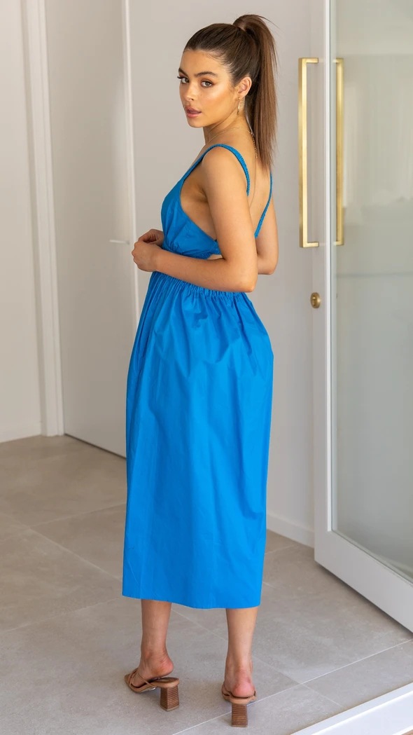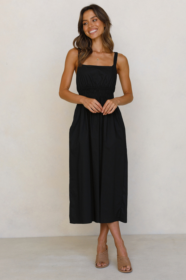 Backless Casual Waist Tight Mid Waist Solid Color Mid-Length Dress