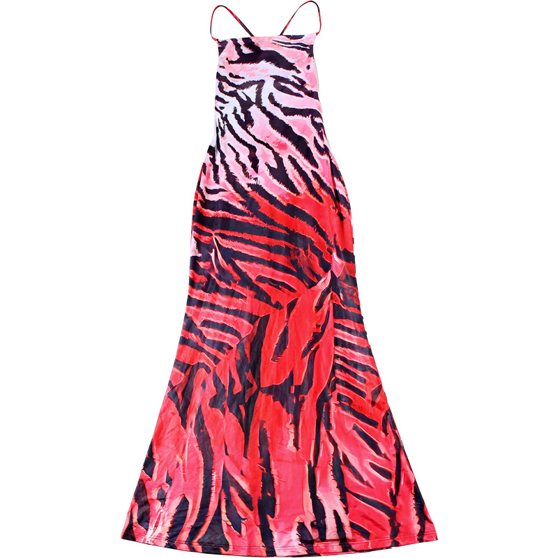 Backless Lace up Gradient Spaghetti Strap Floral Print Dress Maxi for