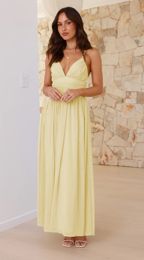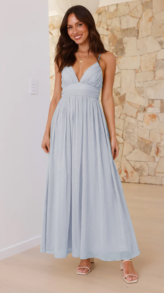 Backless Lace up Tight Waist Slim Chiffon Dress