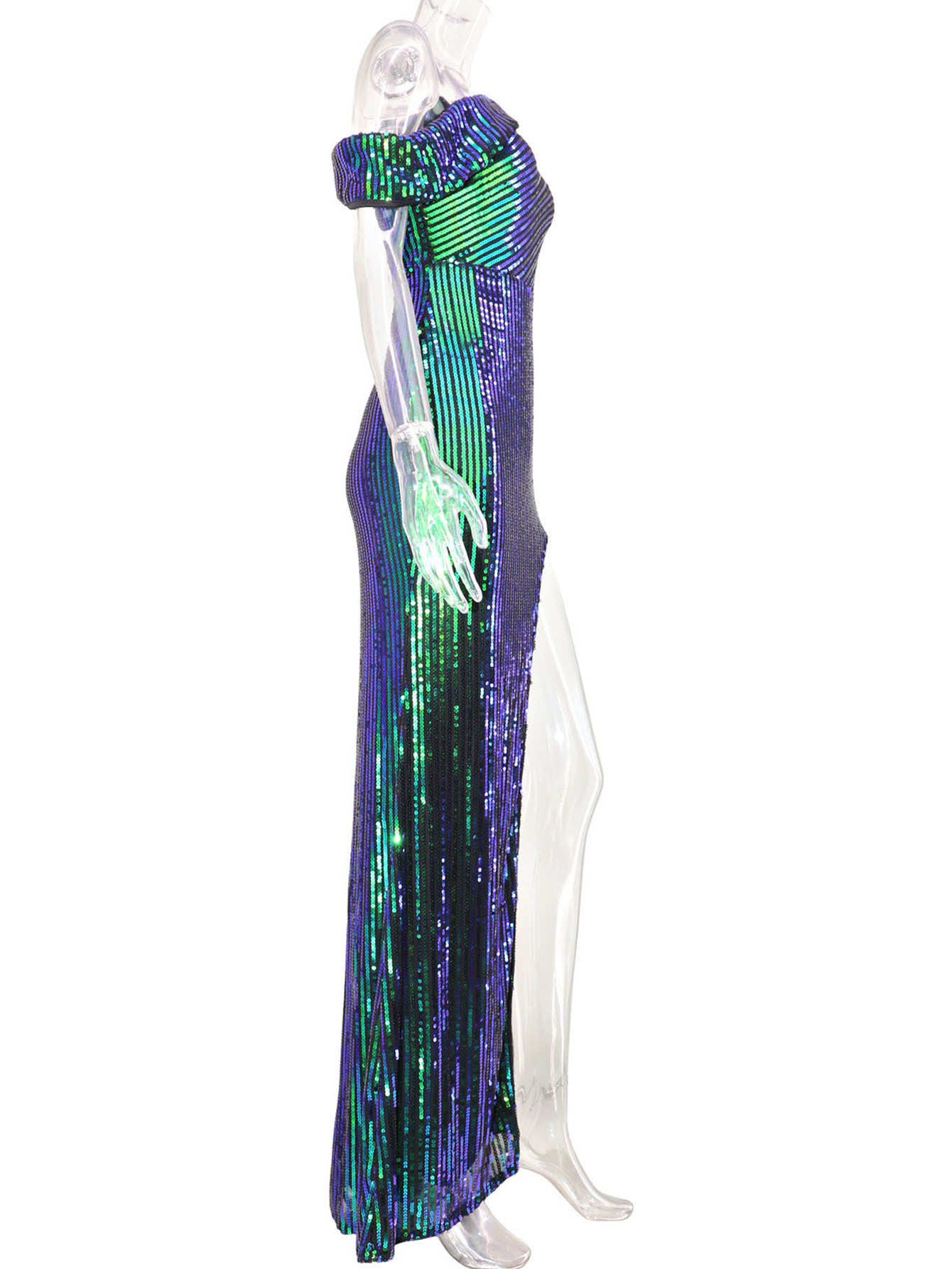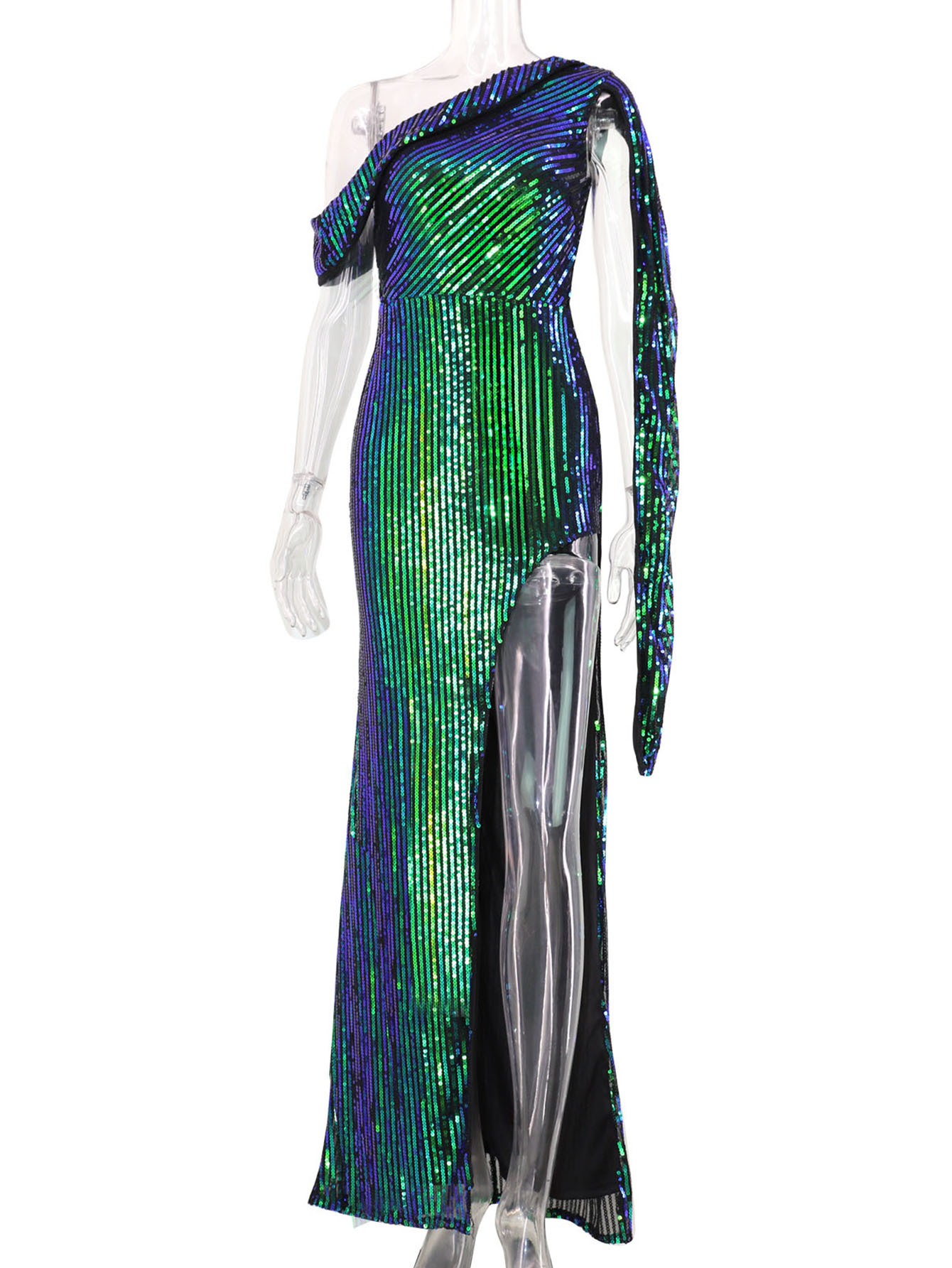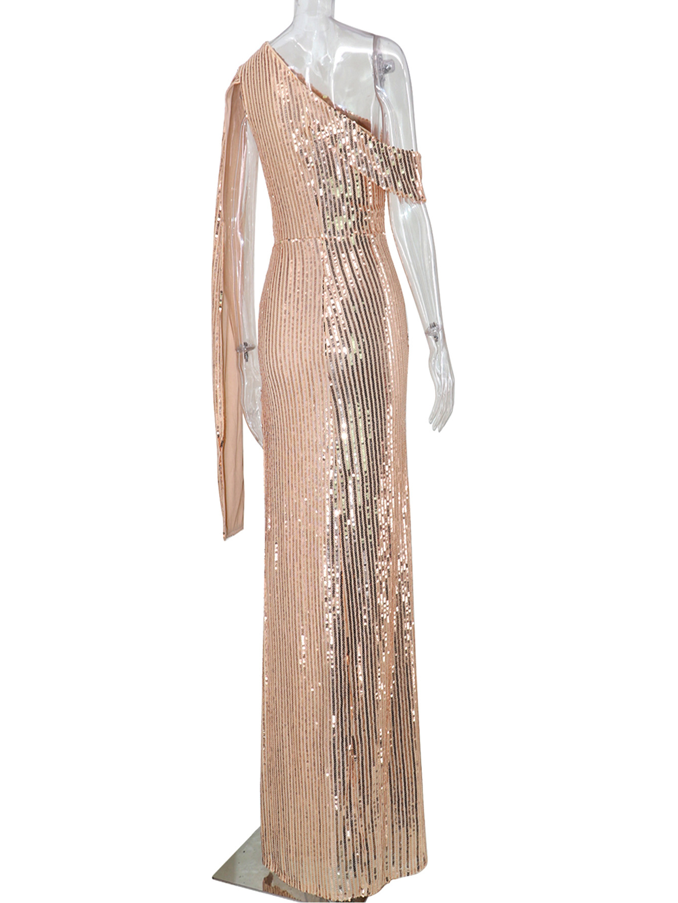 Backless One Shoulder Ribbon Sequ Dress Dress Evening Dress