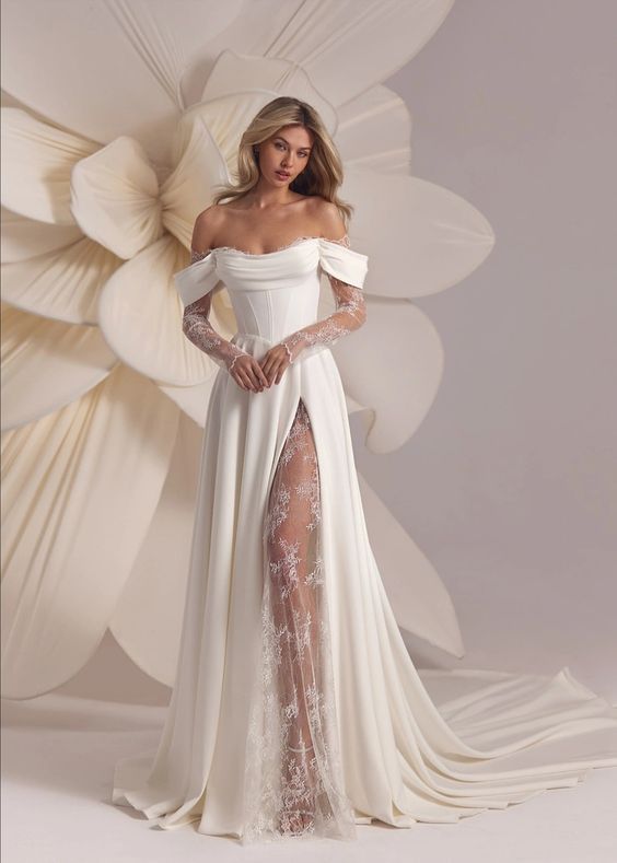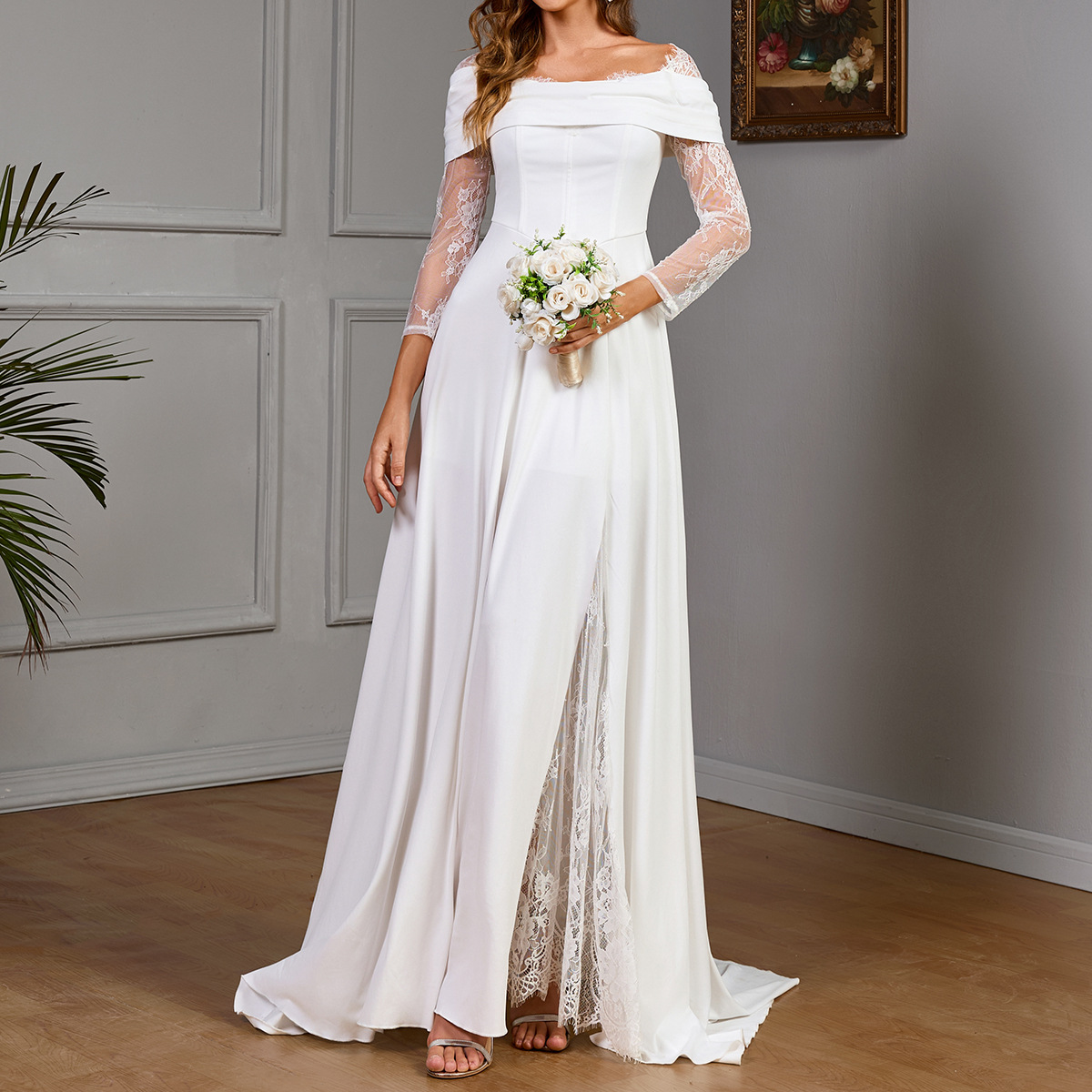 Bandeau Slim Fit Wedding Dress Solid Color Split Maxi Dress