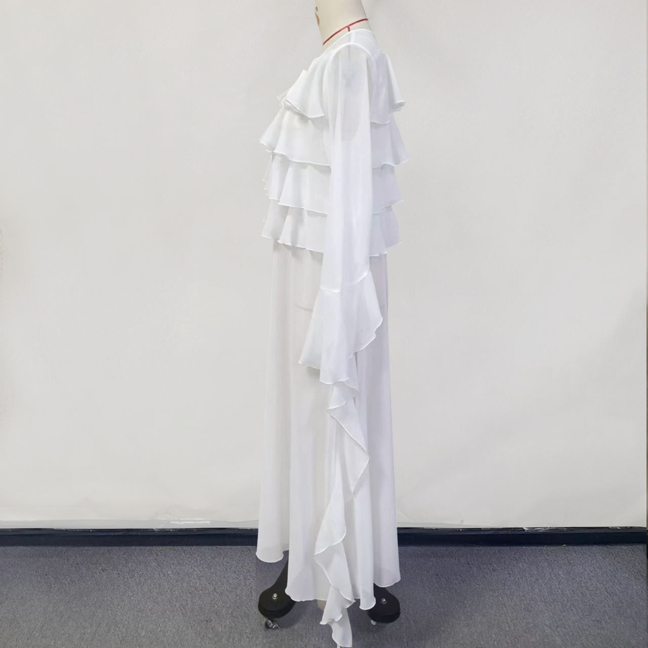 Beach Chiffon Stacked Vacation Pullover Bikini Swimsuit Blouse Sun Protective