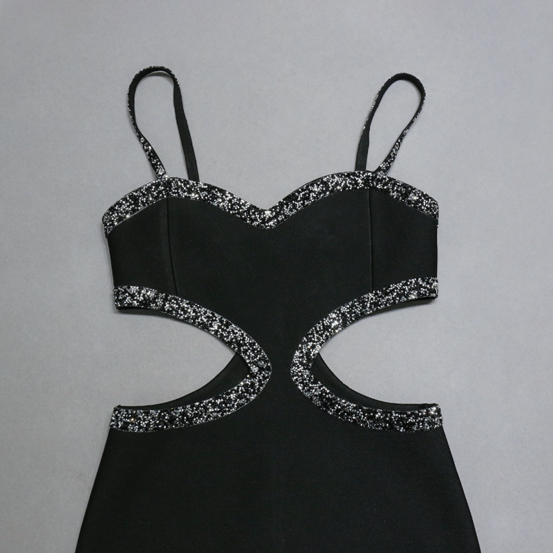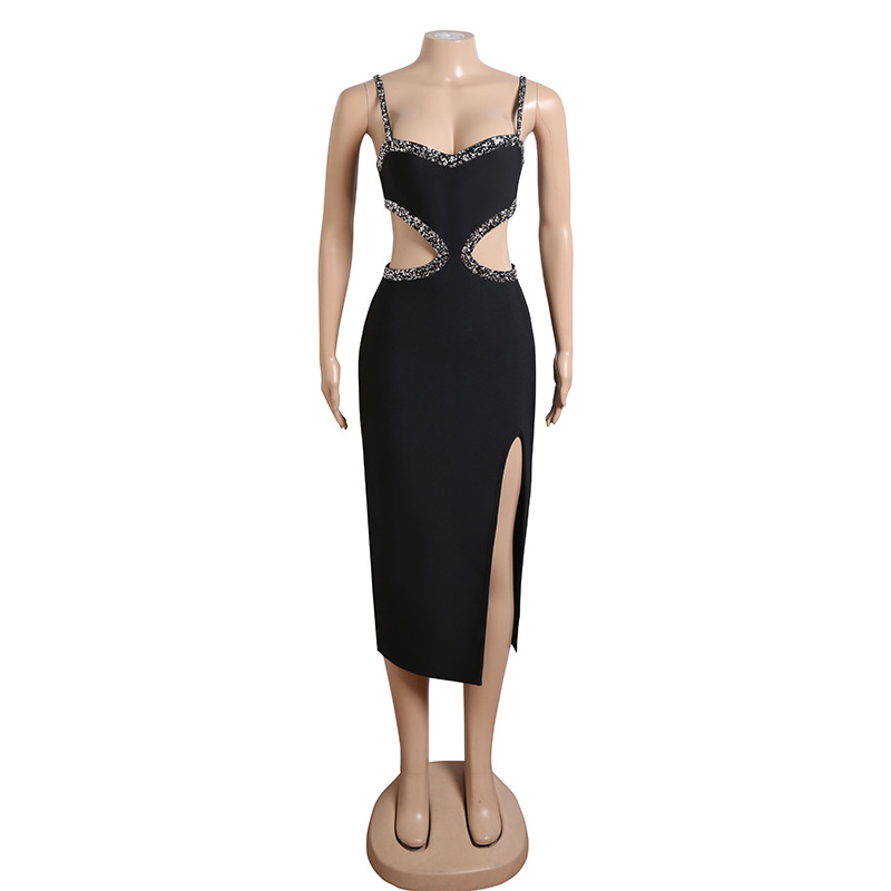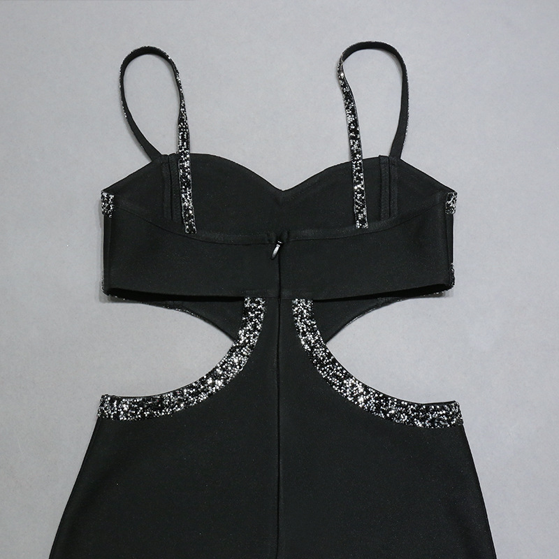 Black Dress Slim Fit Diamond Sling Cropped Outfit Light Luxury Dress Bandage Dress