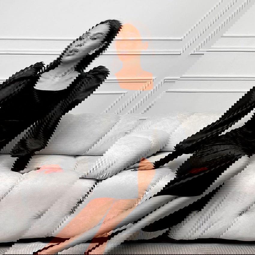 Black Elegant Square Collar Puff Sleeve Knitted Korean Velvet Straight Slim Fit Dress
