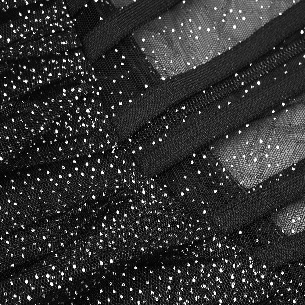 Black Suspender Gold Sleeveless Mesh Pleating Patchwork Maxi Dress Dress