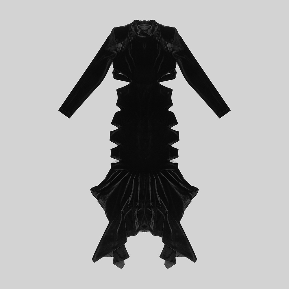 Black Velvet Hollow Out Cutout Round Neck Wear Hip Dress