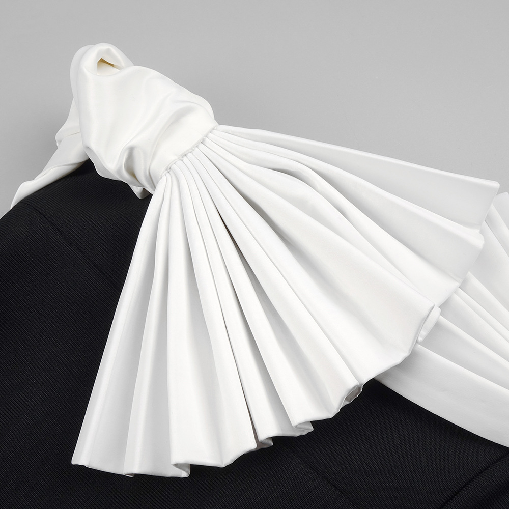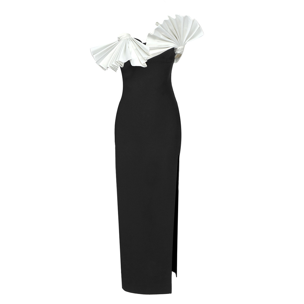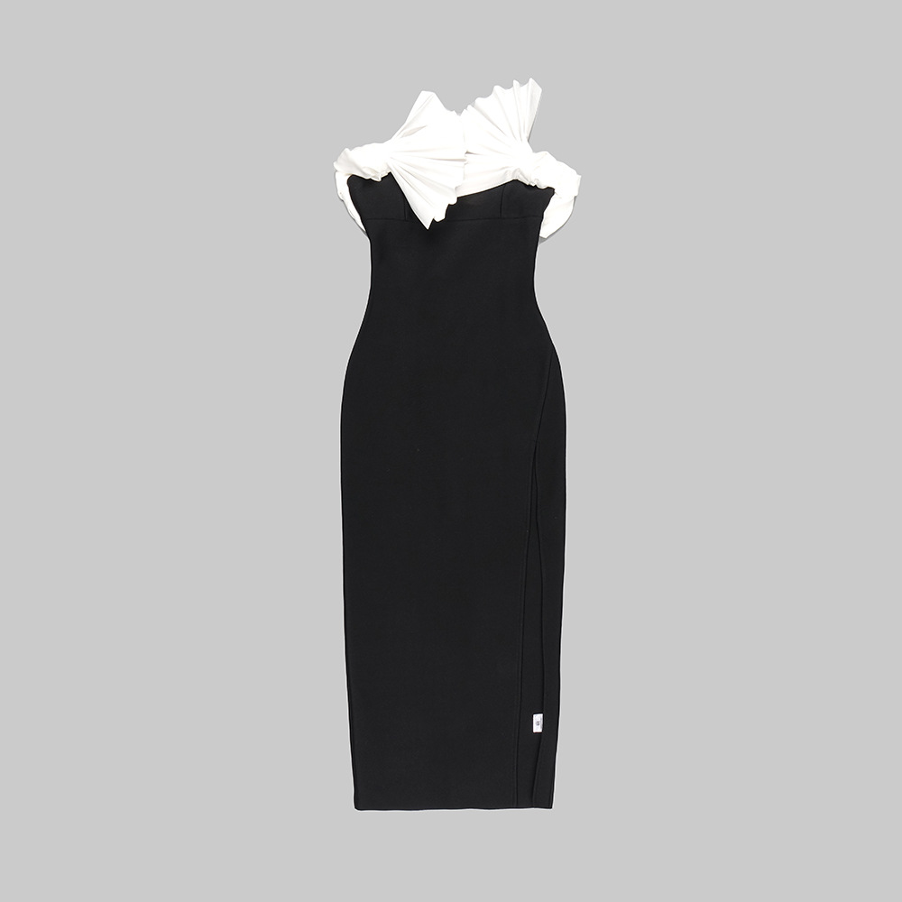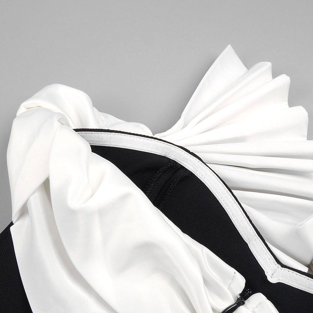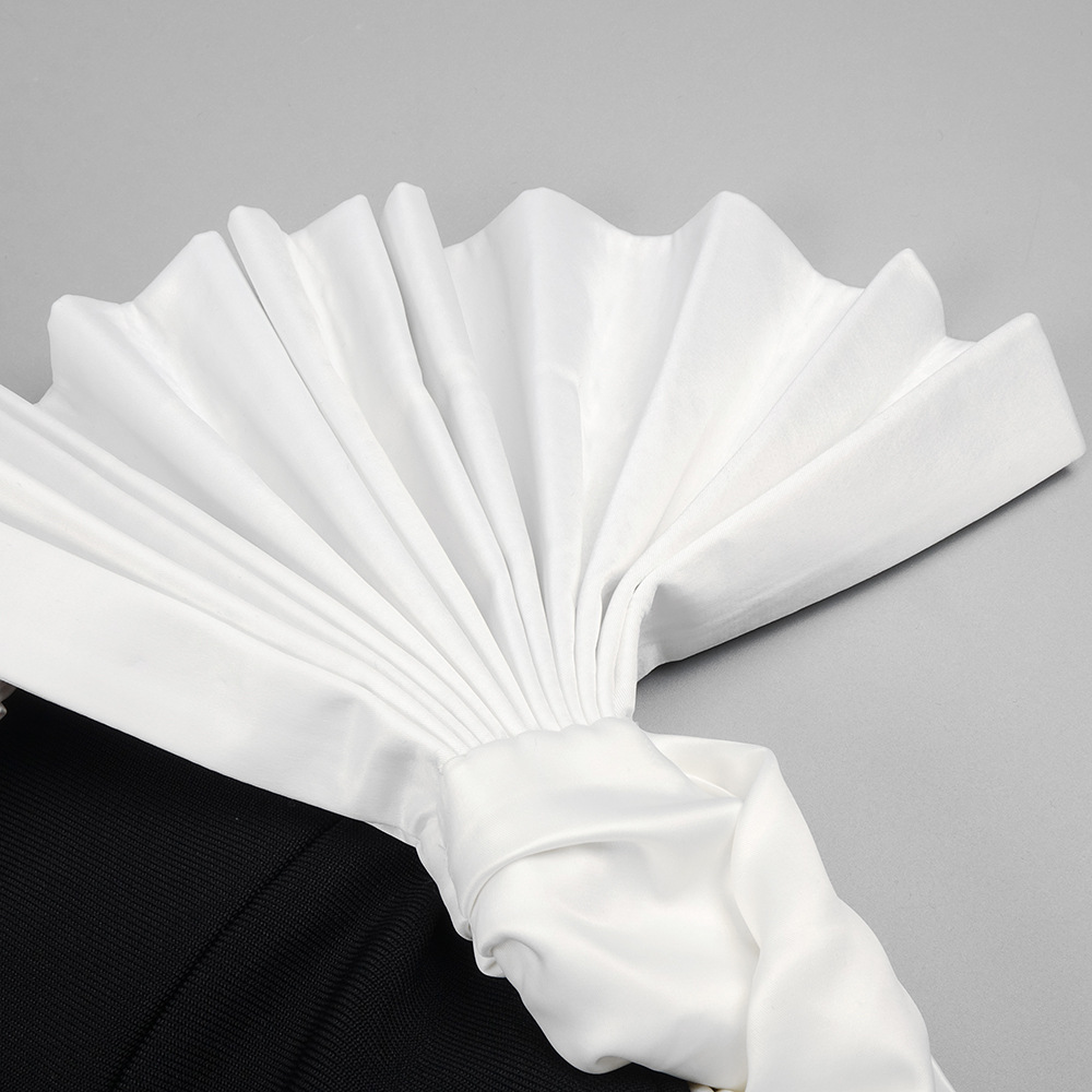 Black White Folding Fan Shape Strapless Dress Backless