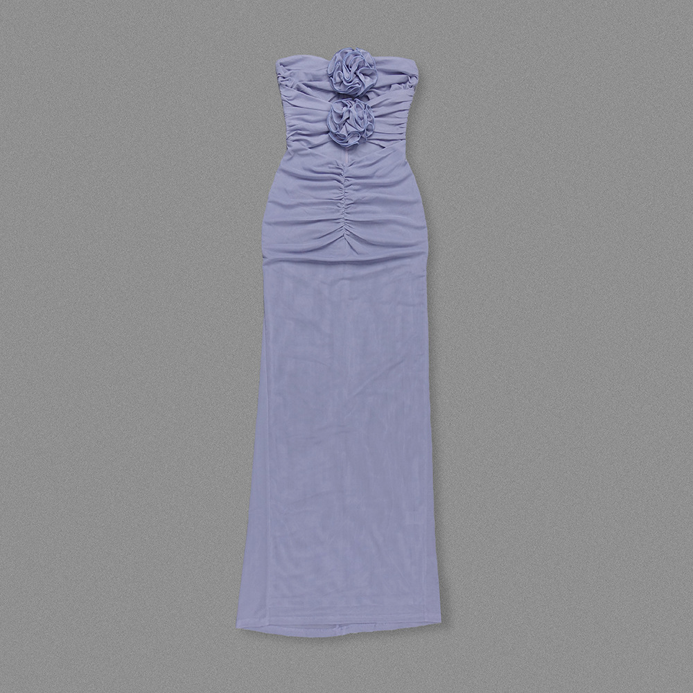 Blue Purple Mesh Elegant Three Dimensional Floral Evening Dress Strapless Dress