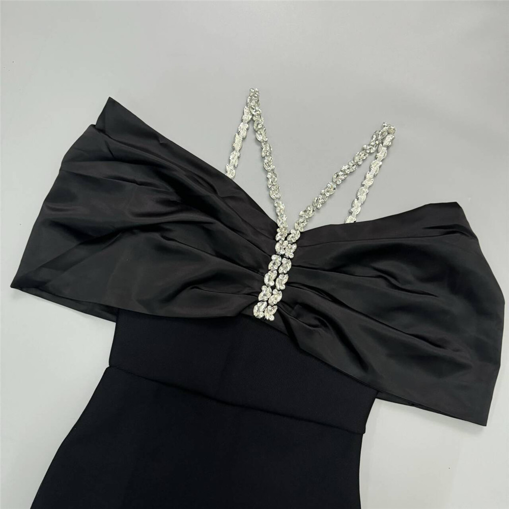 Bow Diamond Off Shoulder Bandage One Piece Dress Cocktail Party Dress