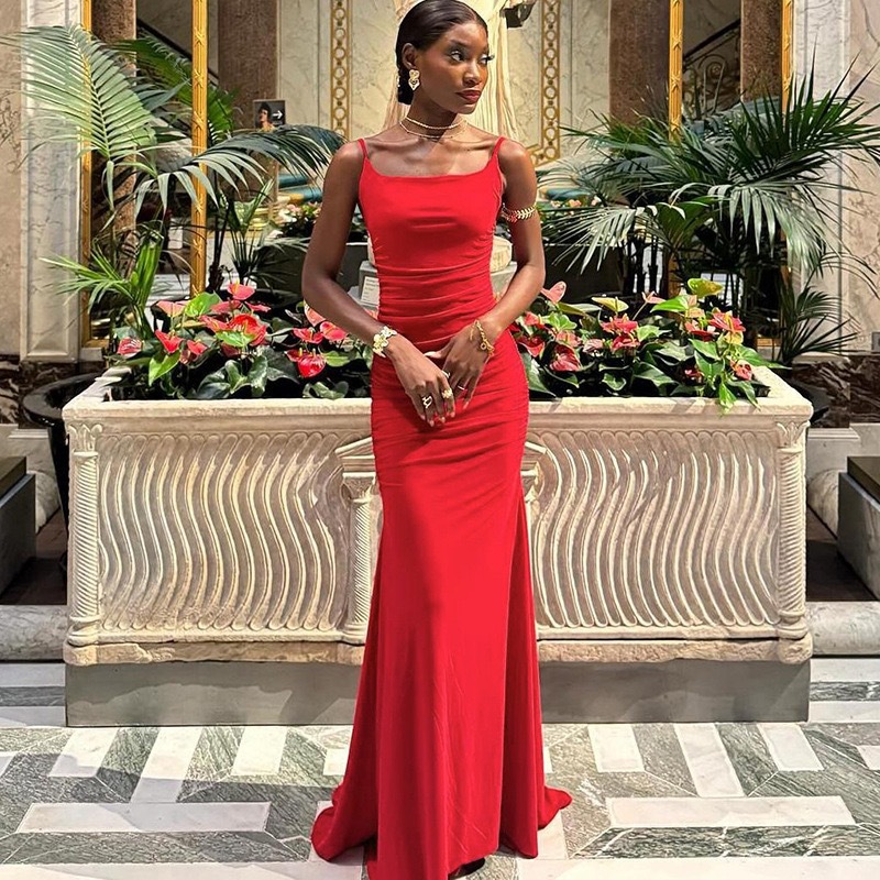 Camisole off Neck Backless Slim Fit Maxi Dress