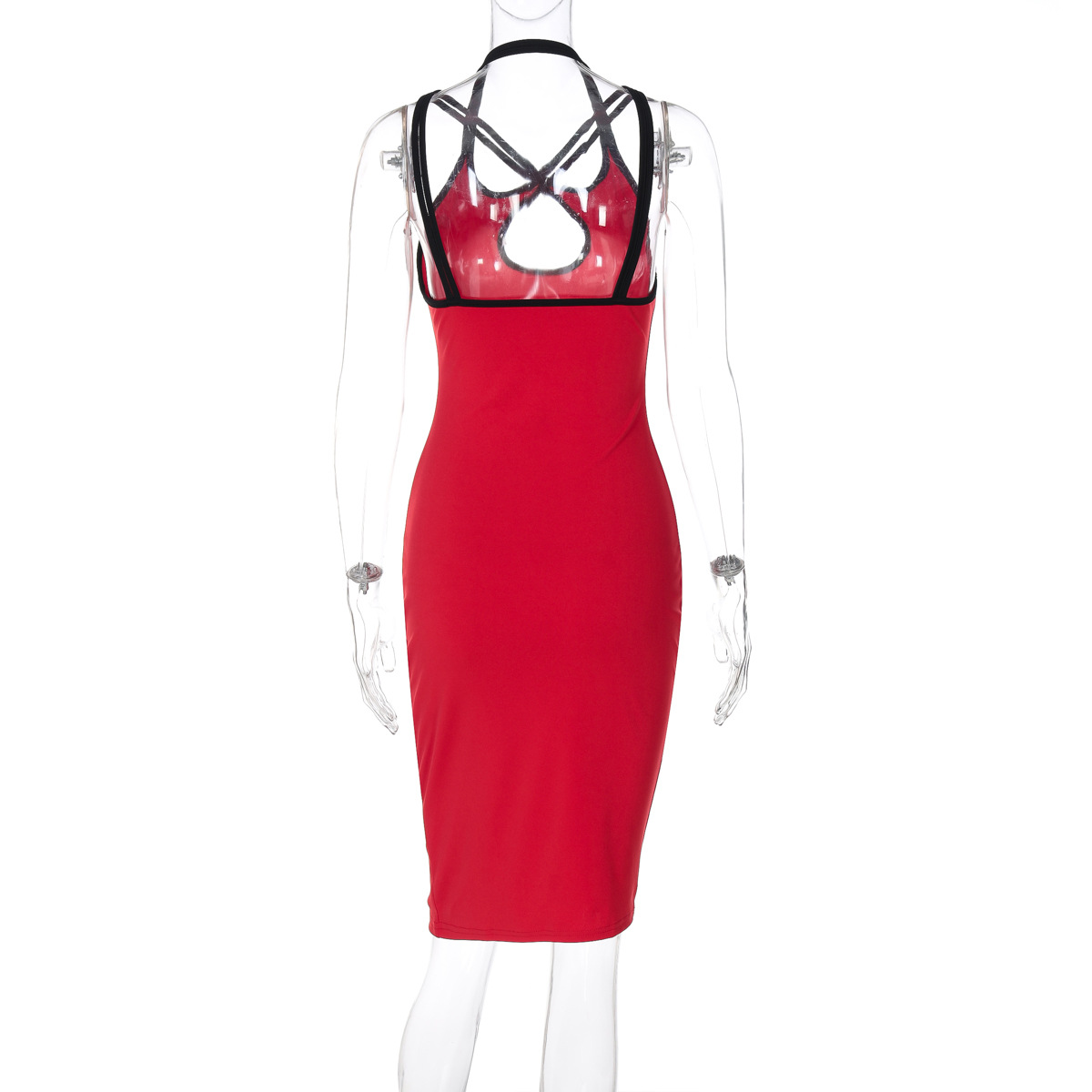 Contrast Color Hollow Out Cutout Slim Fit Dress Halter Backless Lace up Hip
