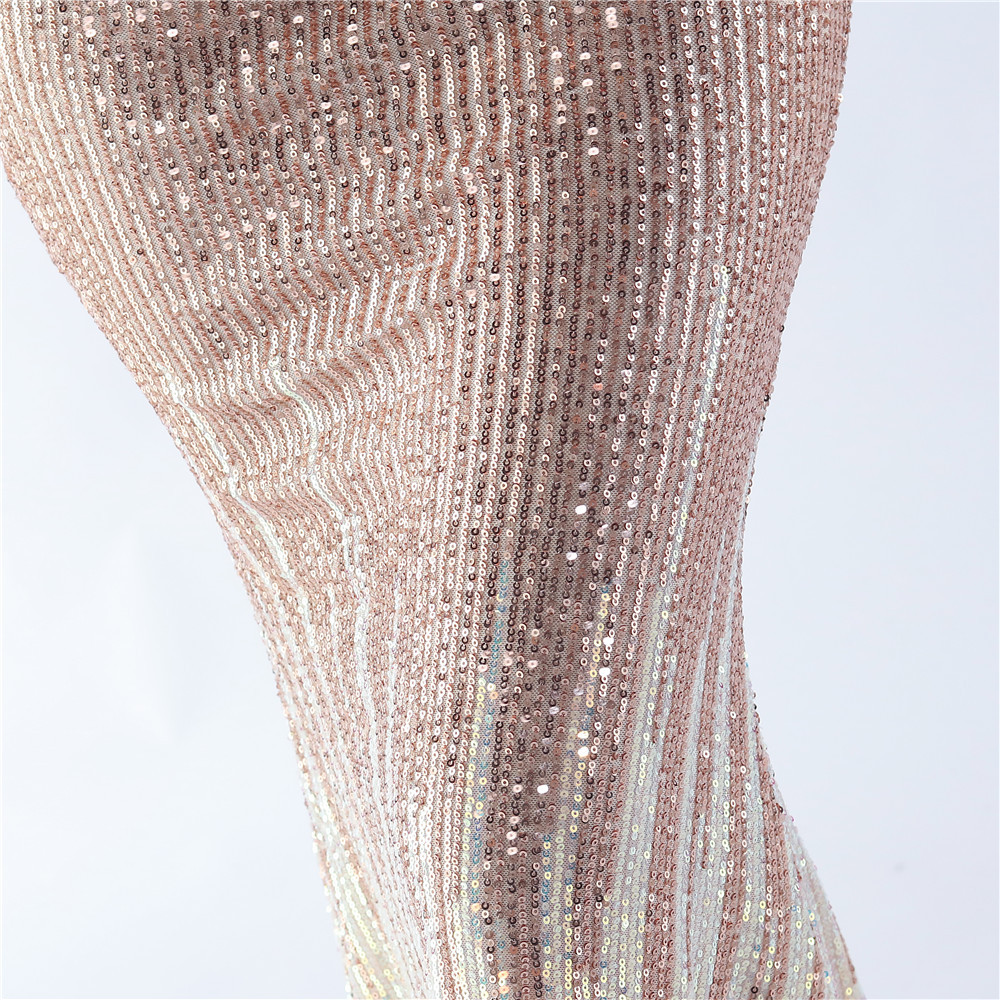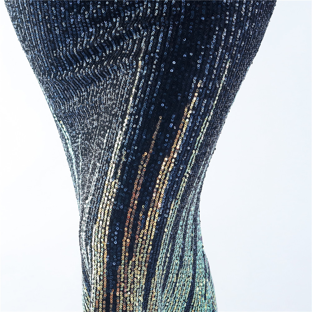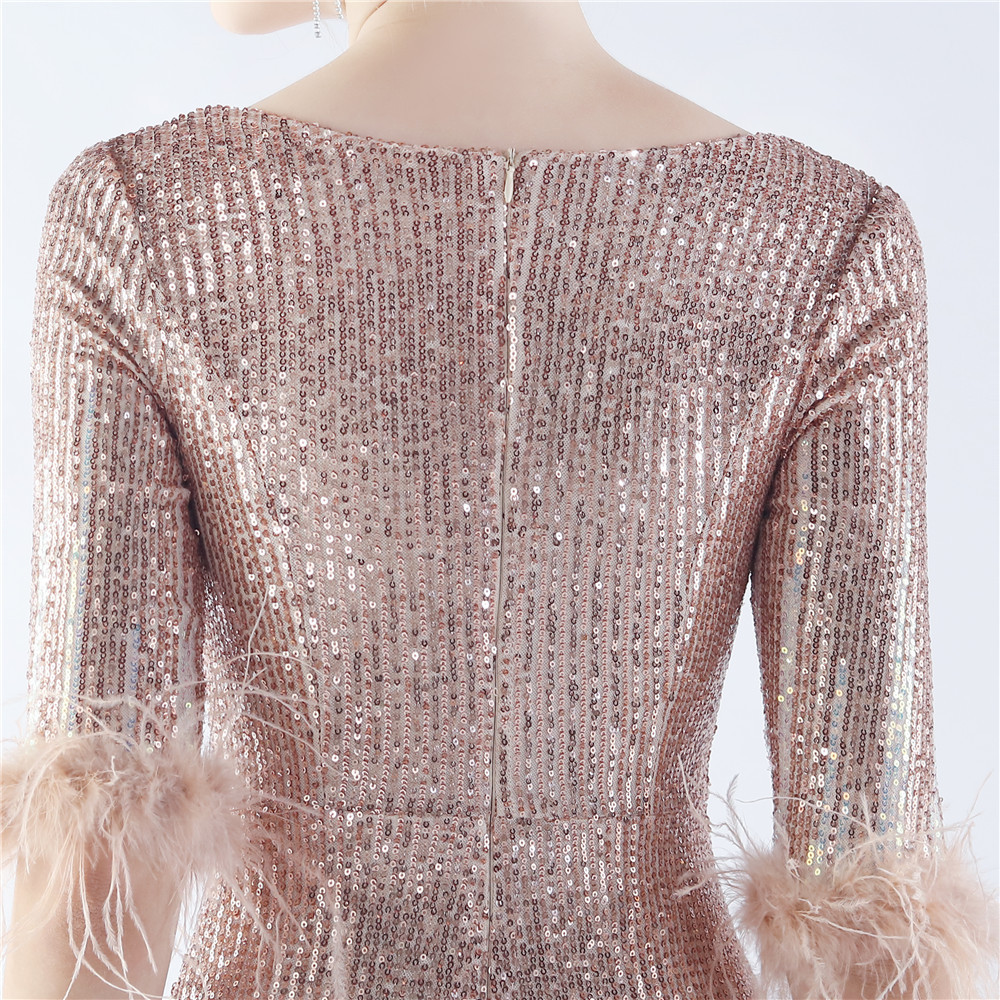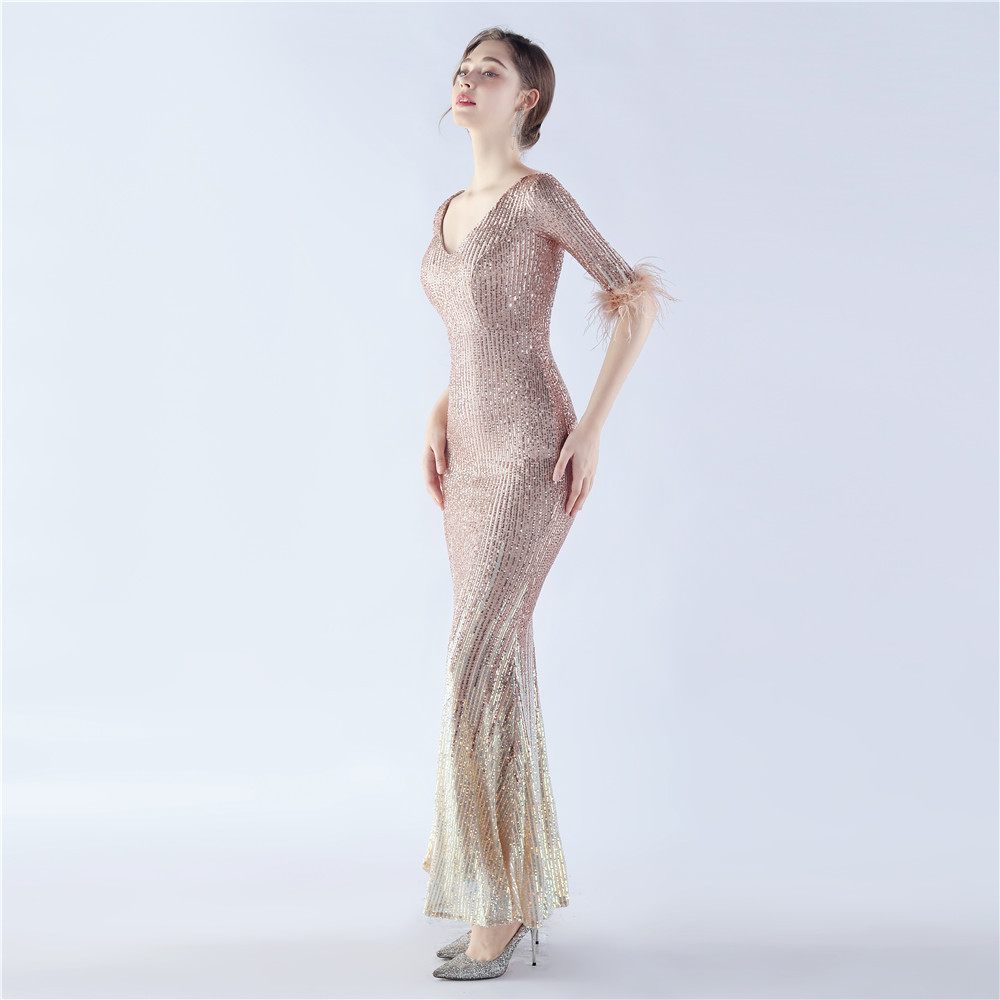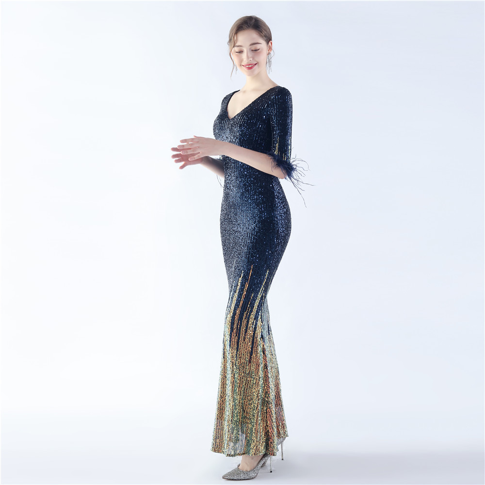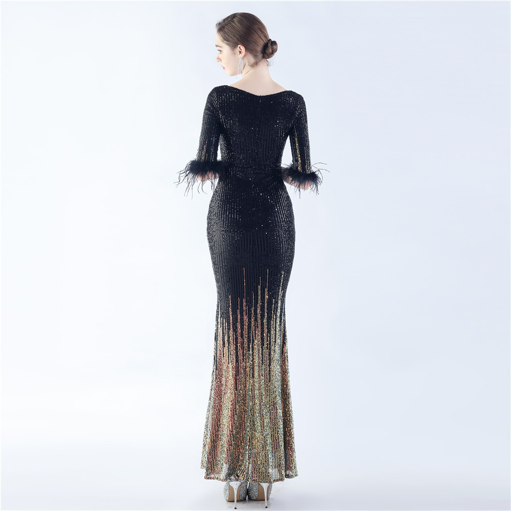 Craft Ostrich Feather Gradient Sequin Half Sleeve High End Evening Dress