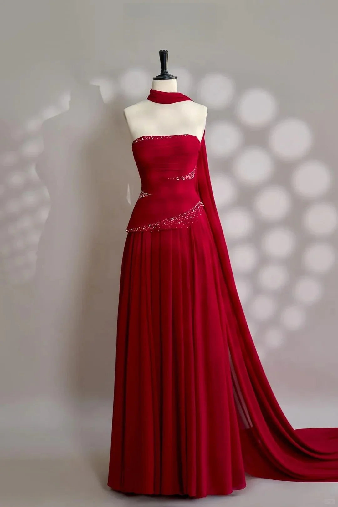 Crystal Beaded Pleated Chiffon Gowns with Shawl