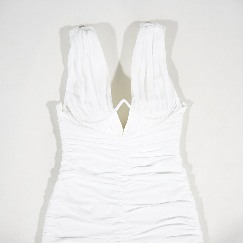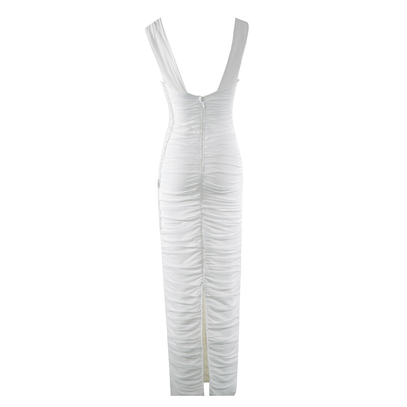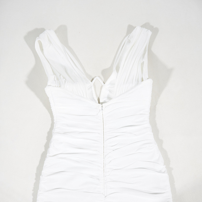 Dress High Grade White Dress Waist Slimming Deep V Plunge Bandage Dress