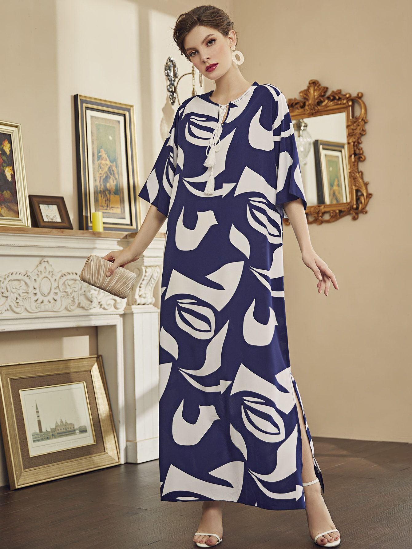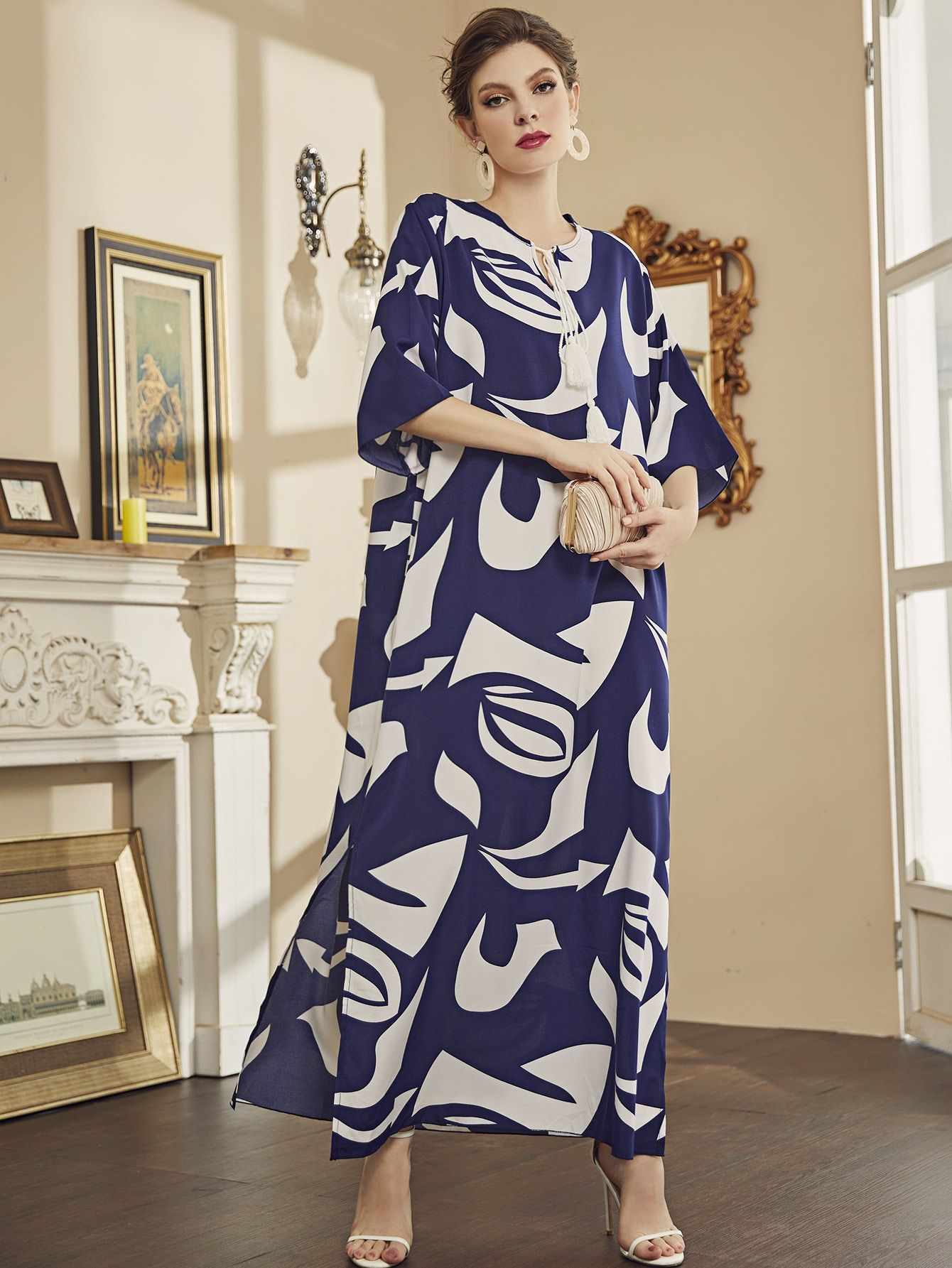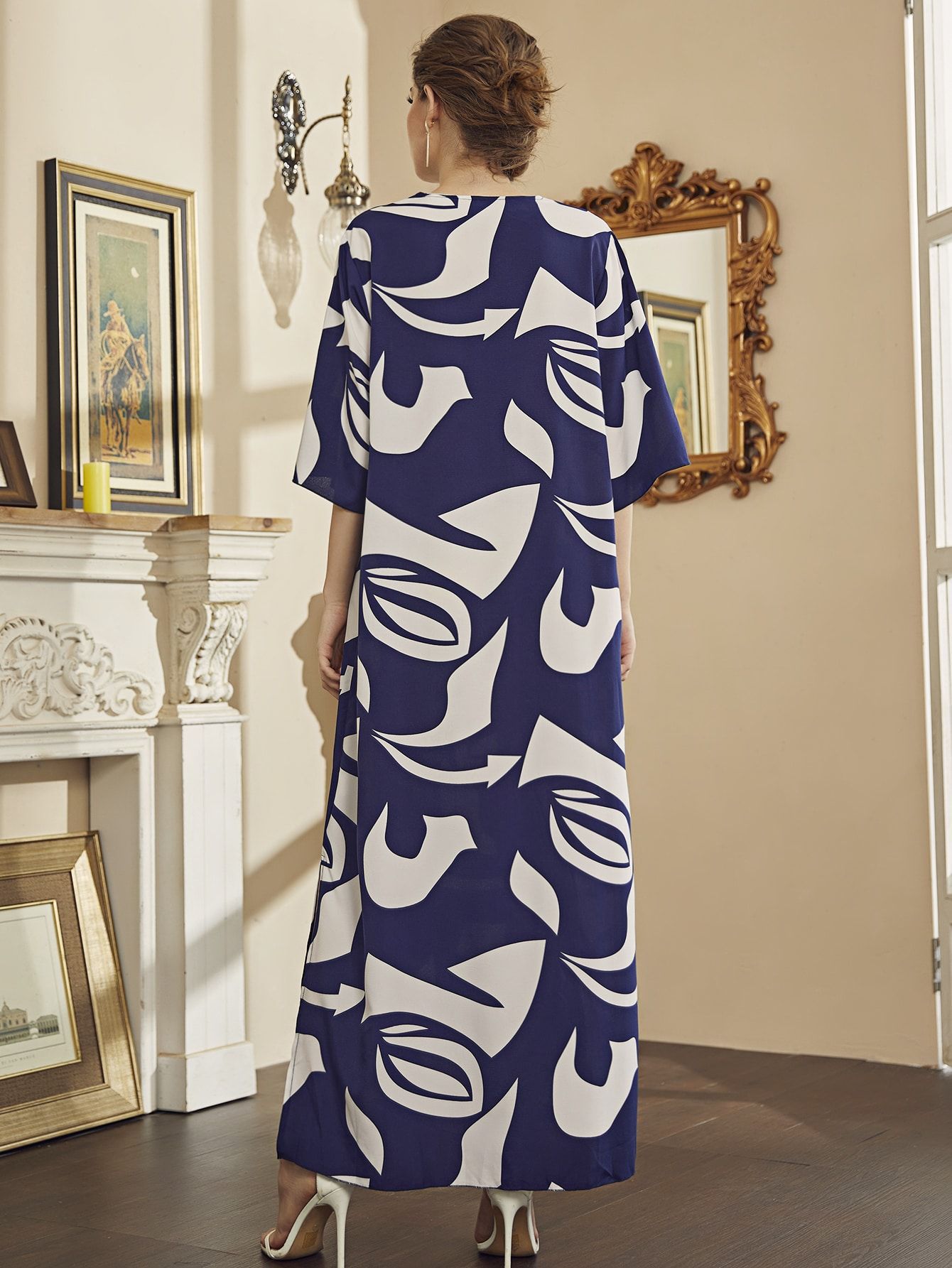 Fashionable Elegant Digital Printed Chiffon Short Sleeve Dress