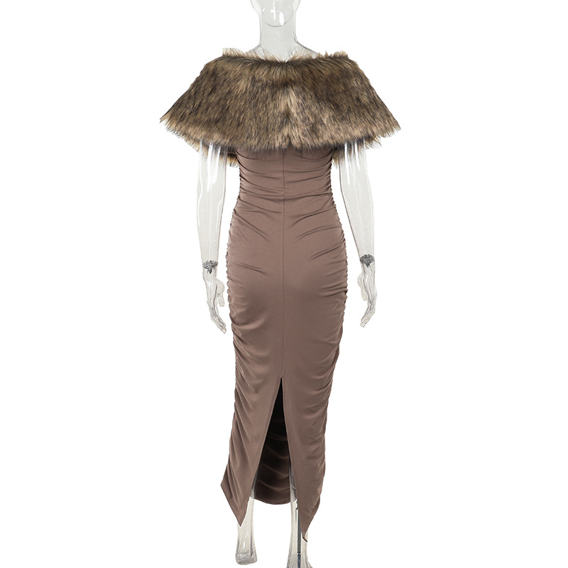 Elegant Slim Fit Furry off Shoulder Tube Top Shawl