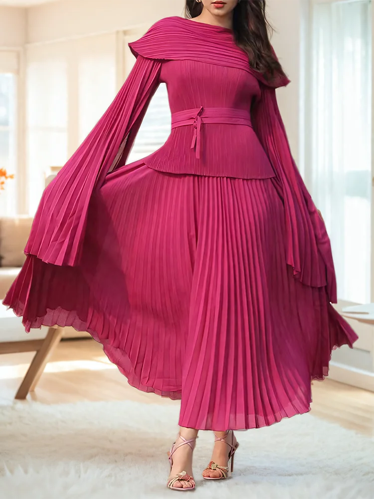 Flare Sleeves Top Elastic Waist Long Skirt Suit