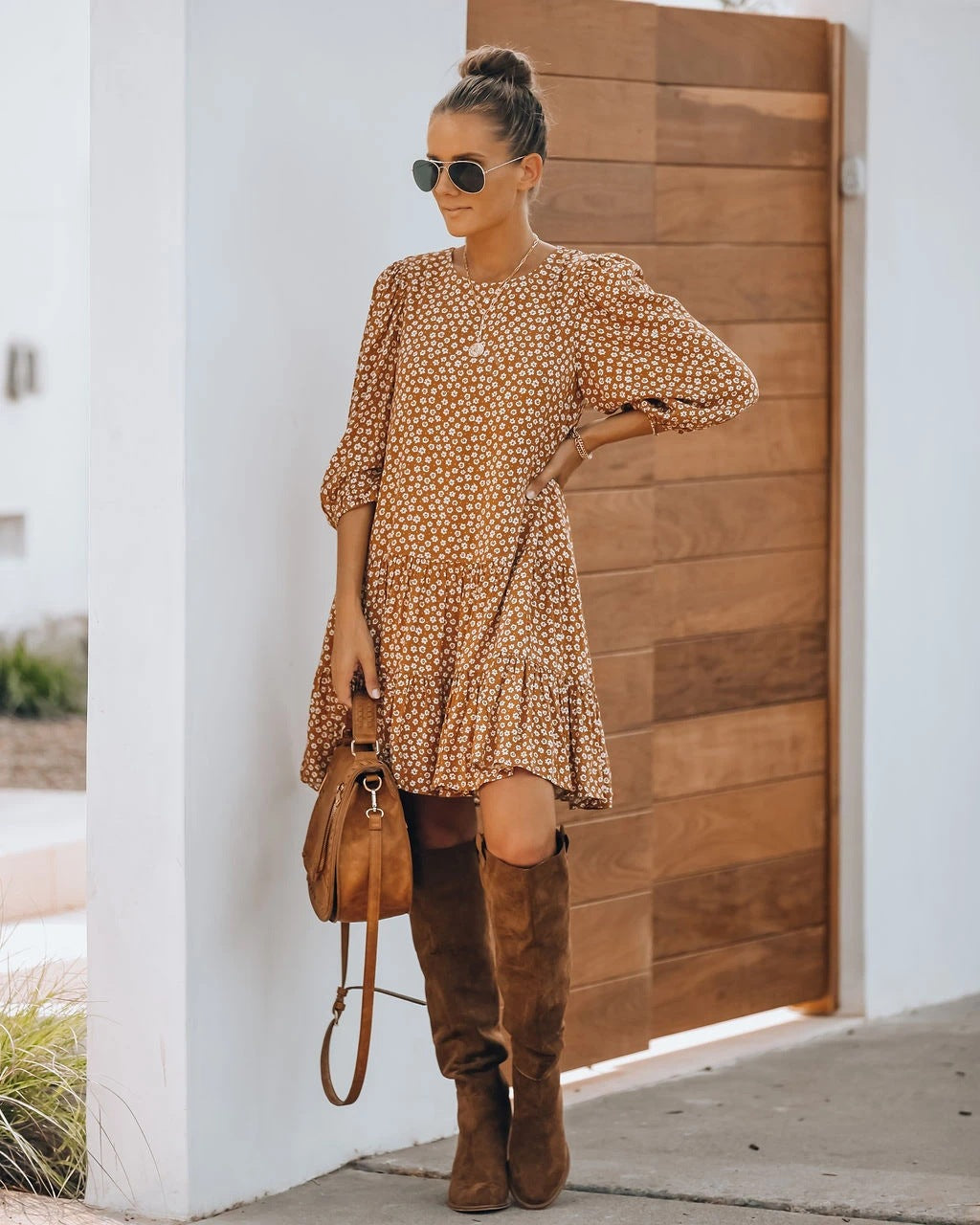 Floral Long Sleeved Princess Sleeves Dress Home Loose Dress