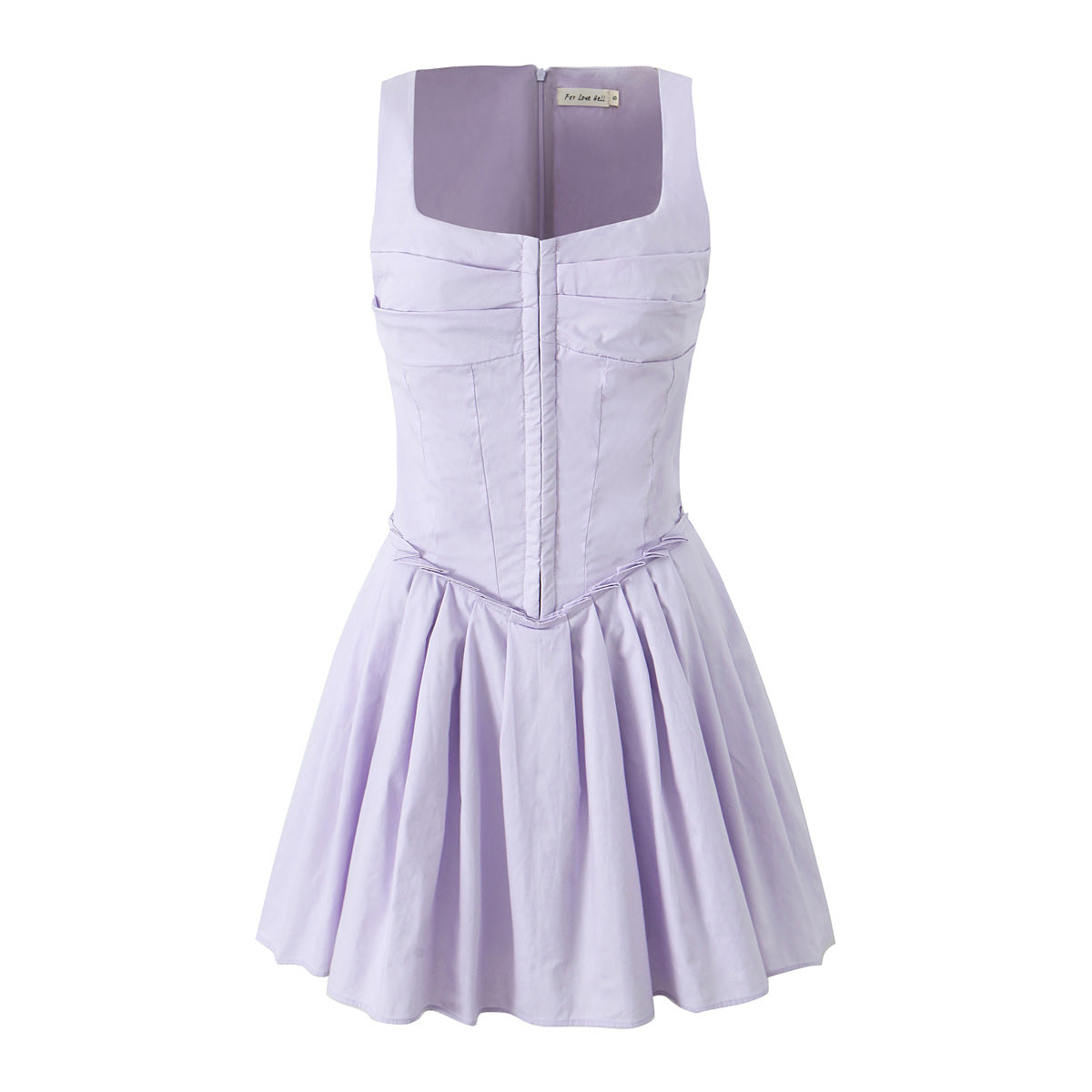 French Sleeveless Breasted Dress Sweet Spicy Slim Solid Color A line Pleated Dress