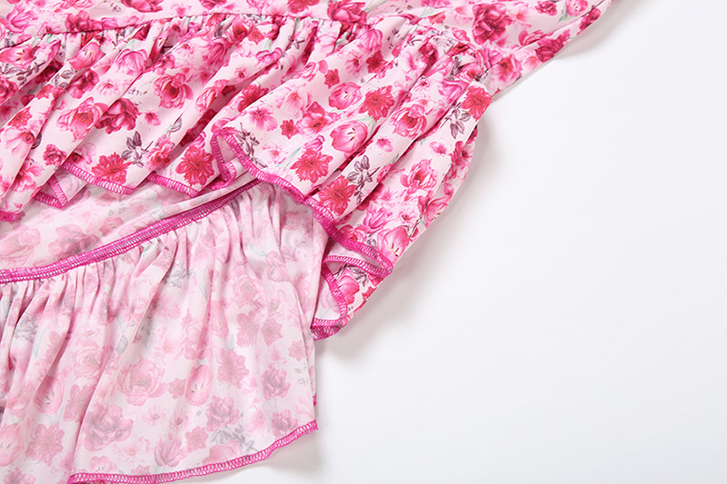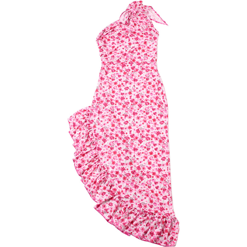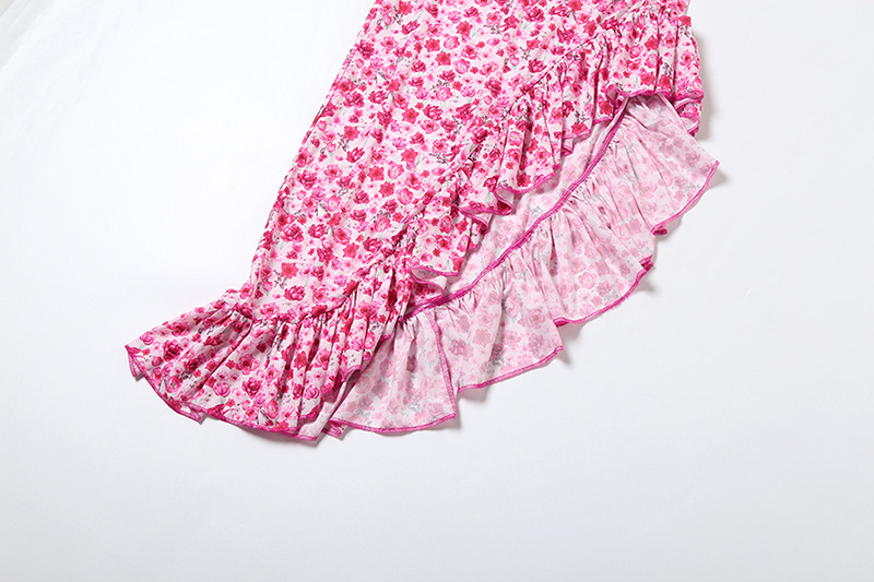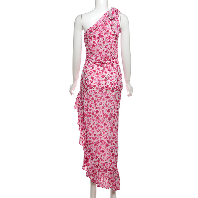 French Small Floral Oblique Shoulder Dress Side Split Tied Dress