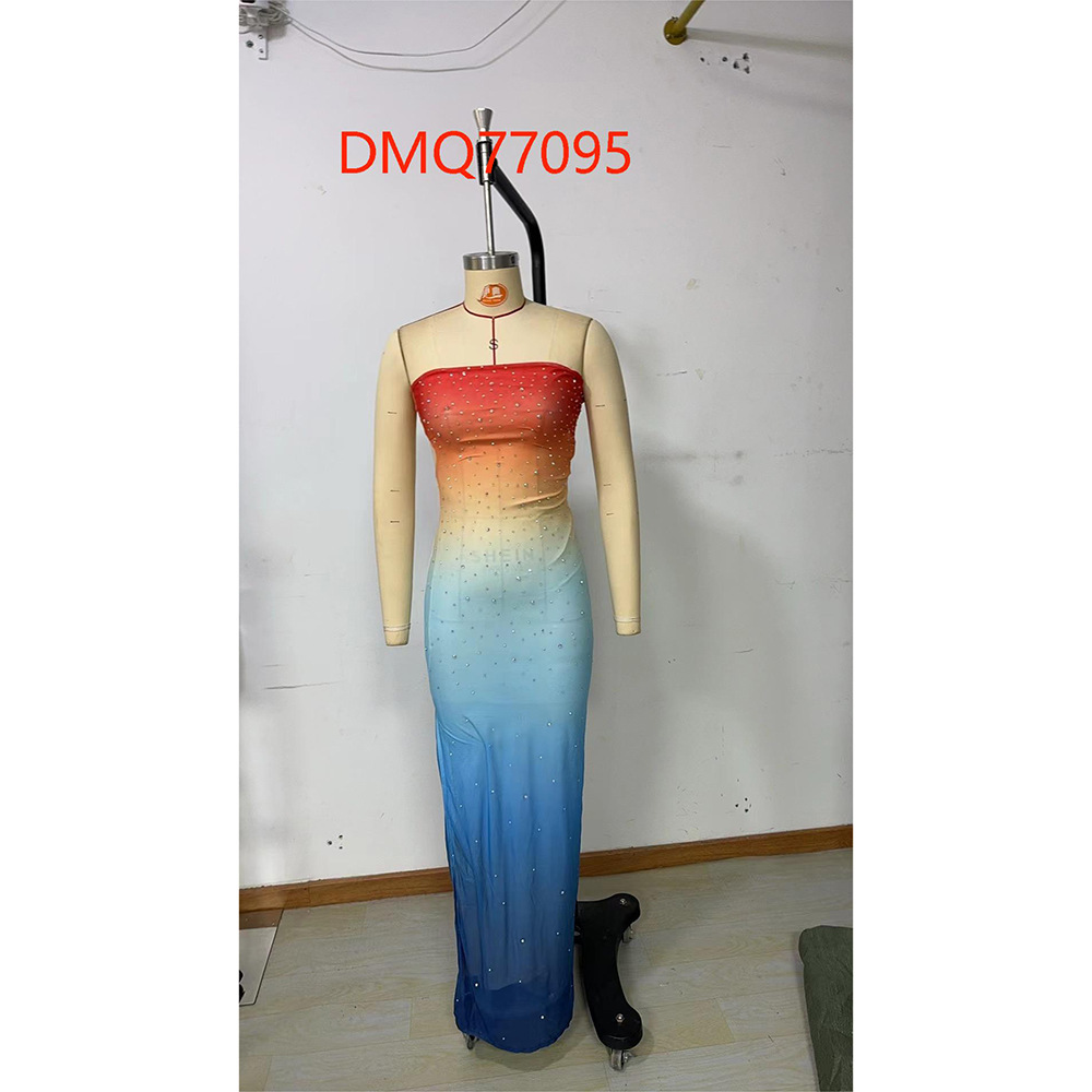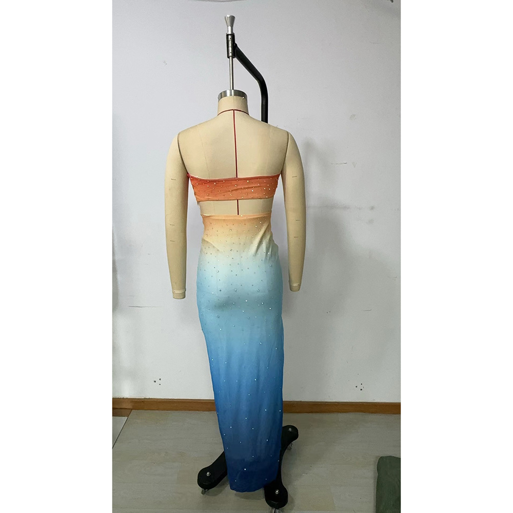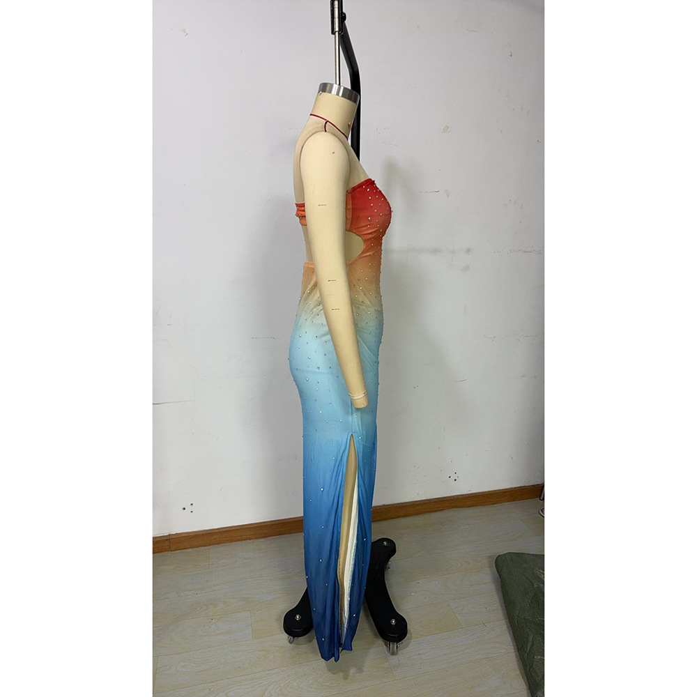 Gradient Color Rhinestone Tube Top Cocktail Party Dress