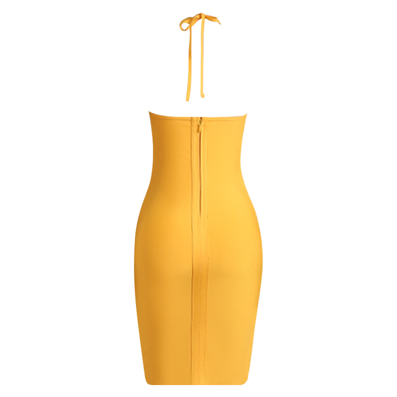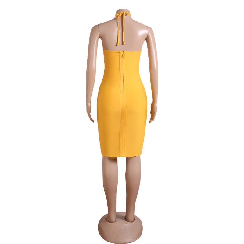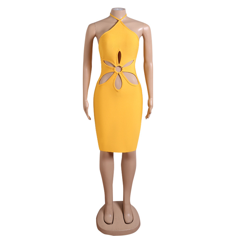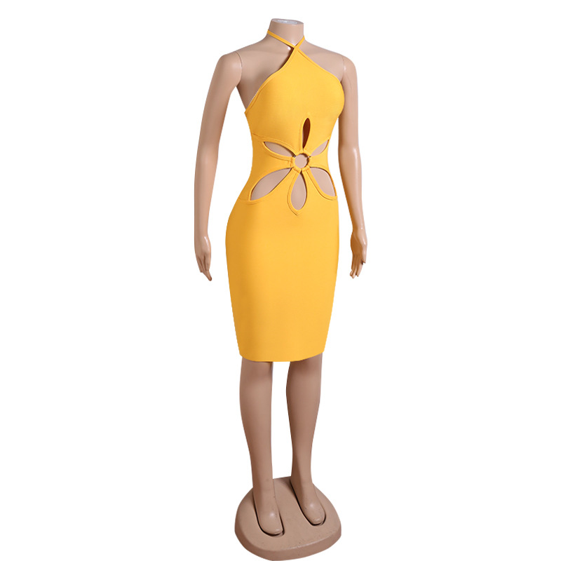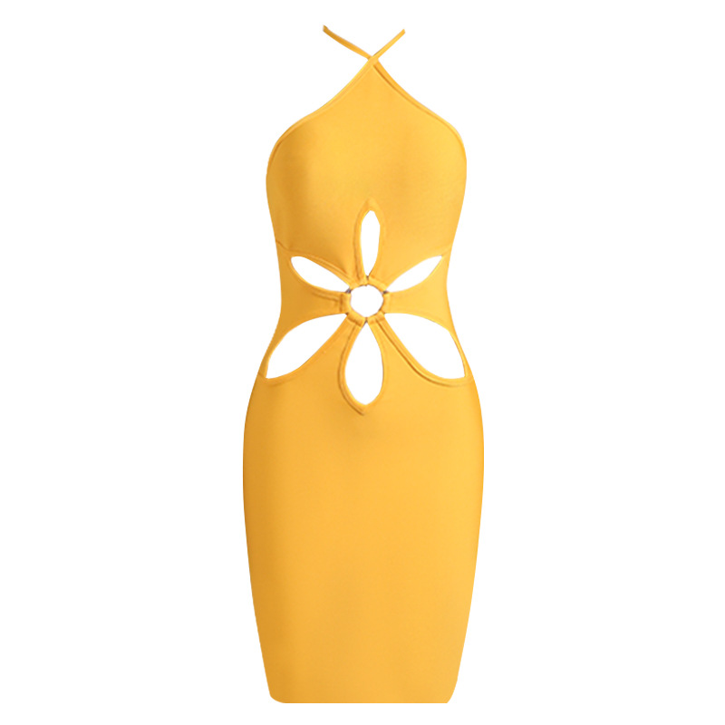 Halter Lace up Hollow Out Cutout out Dress Backless Belly Button Bandage One Piece Dress