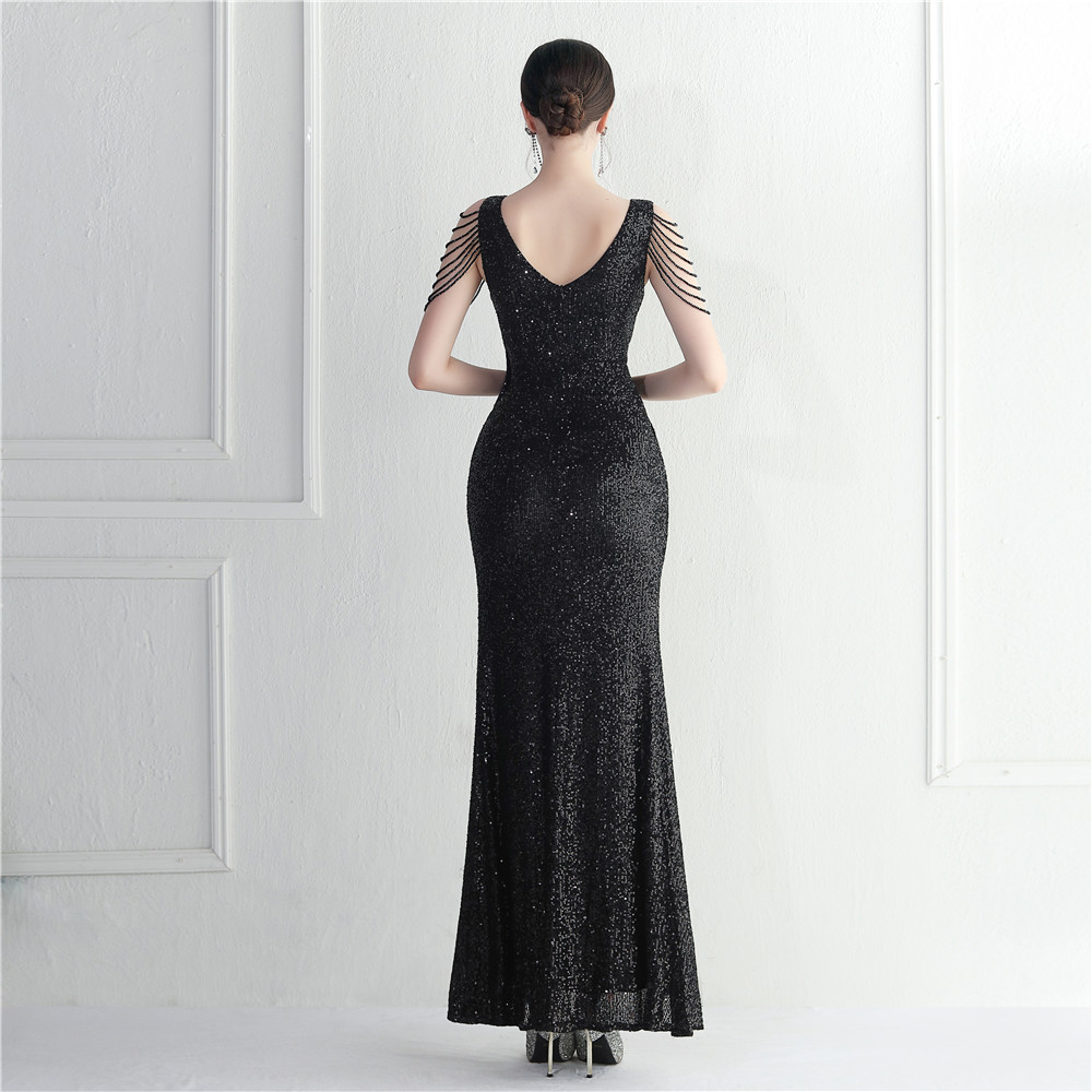 Handmade Beaded Dress Socialite Car Model Dinner Performance Long Evening Dress
