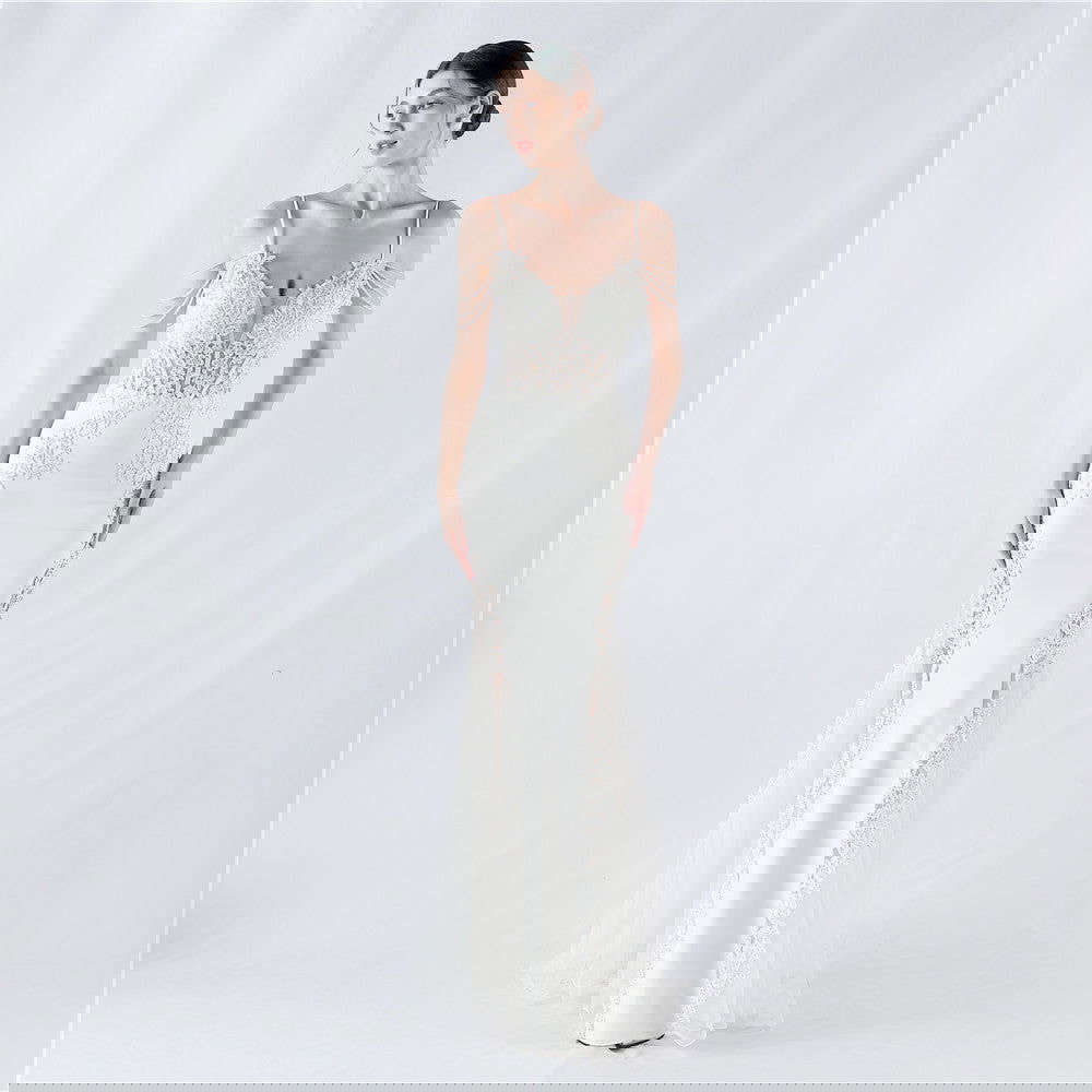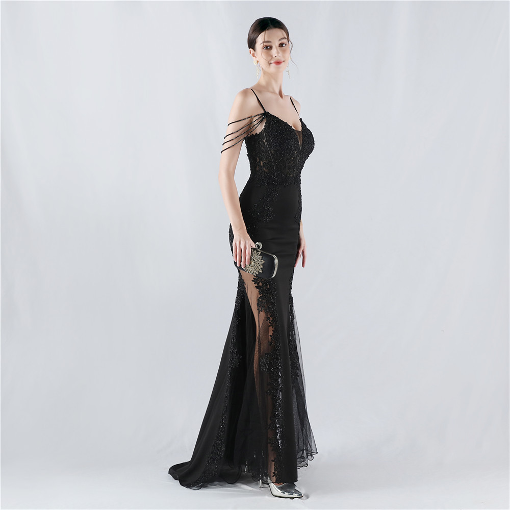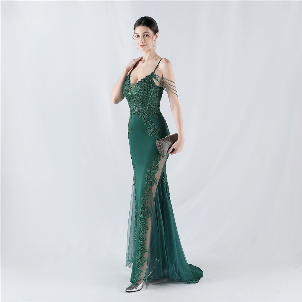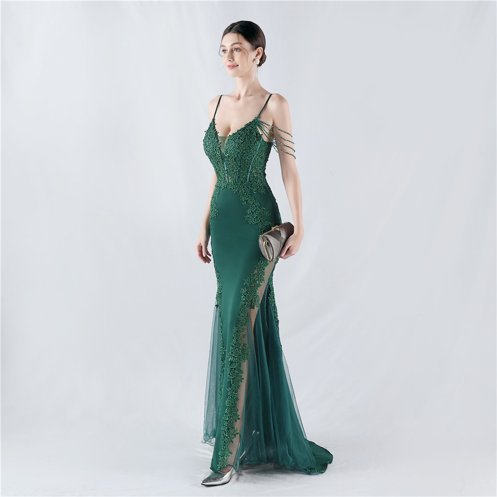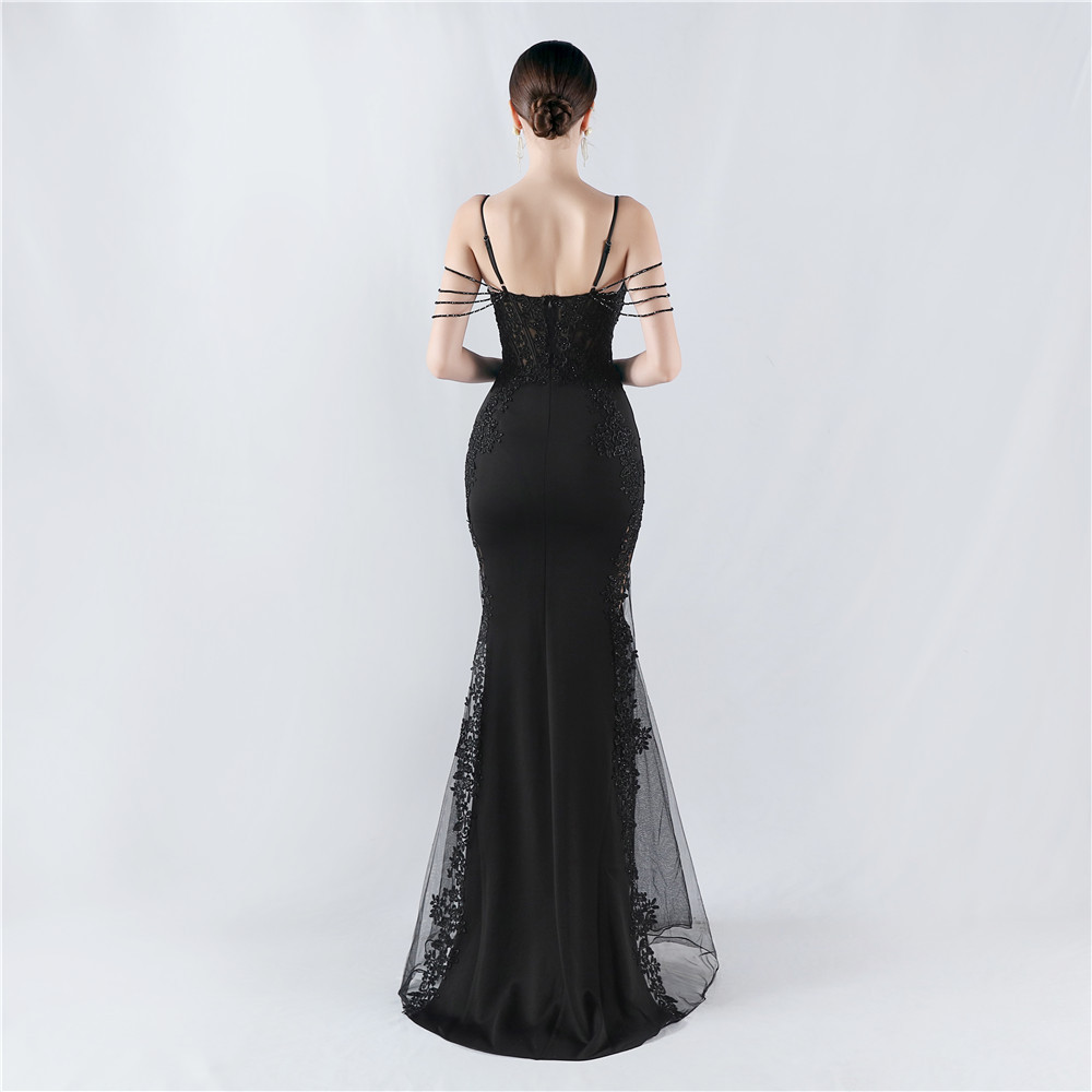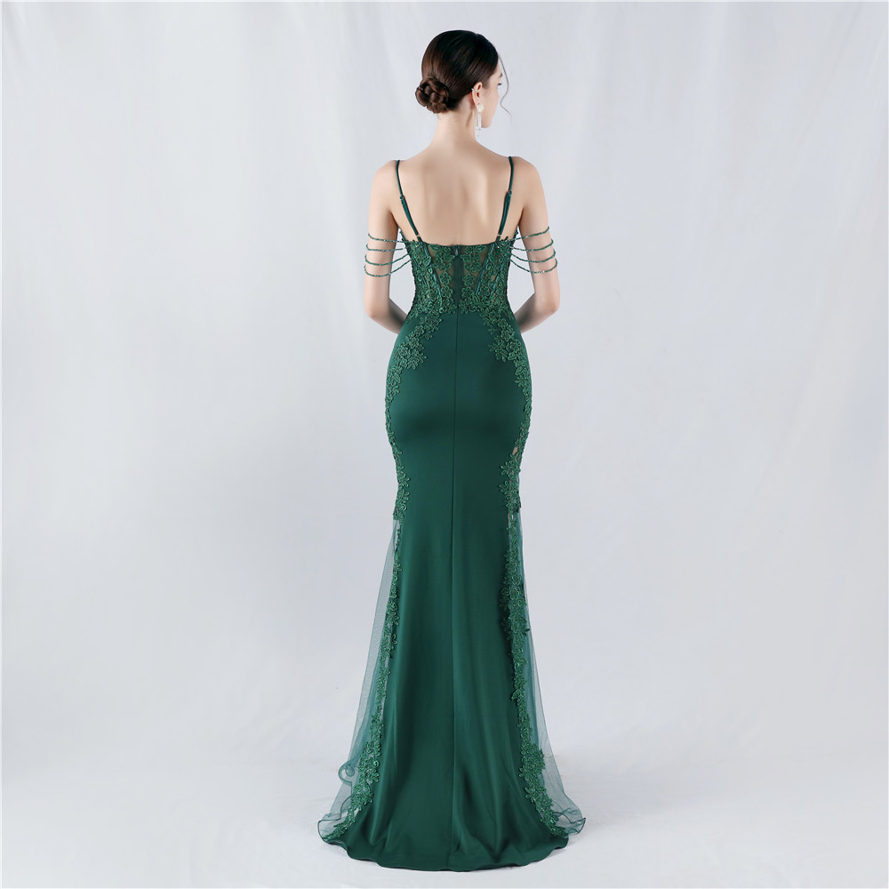 Heavy Embroidery Drilling Boning Corset Vest Lace Beaded High Fork Evening Dress