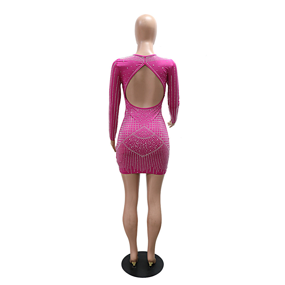 Hollow Out Cutout Long Sleeve Dress Hip Wrapped Dress Short Dress Drilling Chain Terms