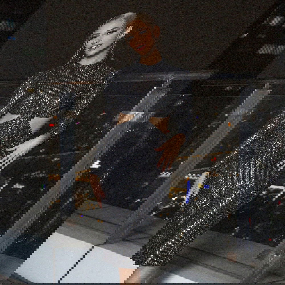 Hollow Out Cutout Out Long Sleeve Sequined Slim Fit Nightclub Party Dress