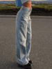 Hellblaue, verwaschene Straight Boyfriendjeans