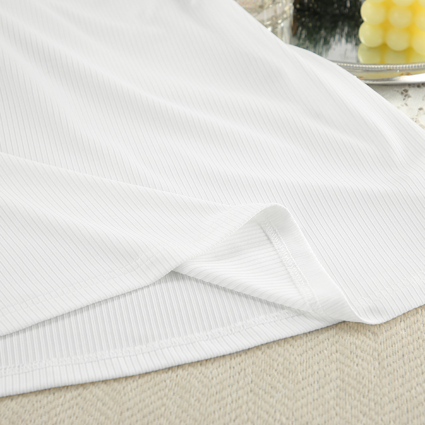 Knitted Sunken Stripe Long Sleeved Backless Nightdress Simple Comfortable Casual Homewear