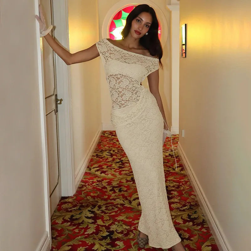 Lace Hollow Out Sleeveless Bodycon Maxi Dress