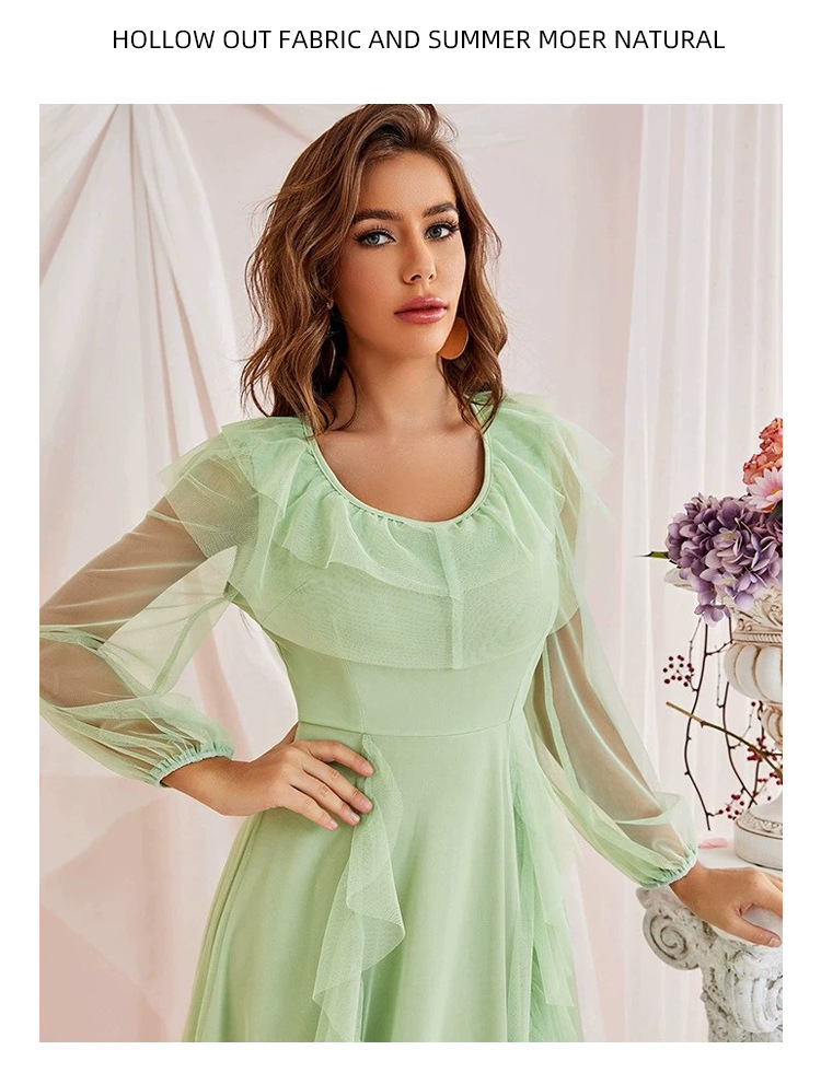 Lace Mesh Maxi Dress round Neck High Waist Voile A line Dress