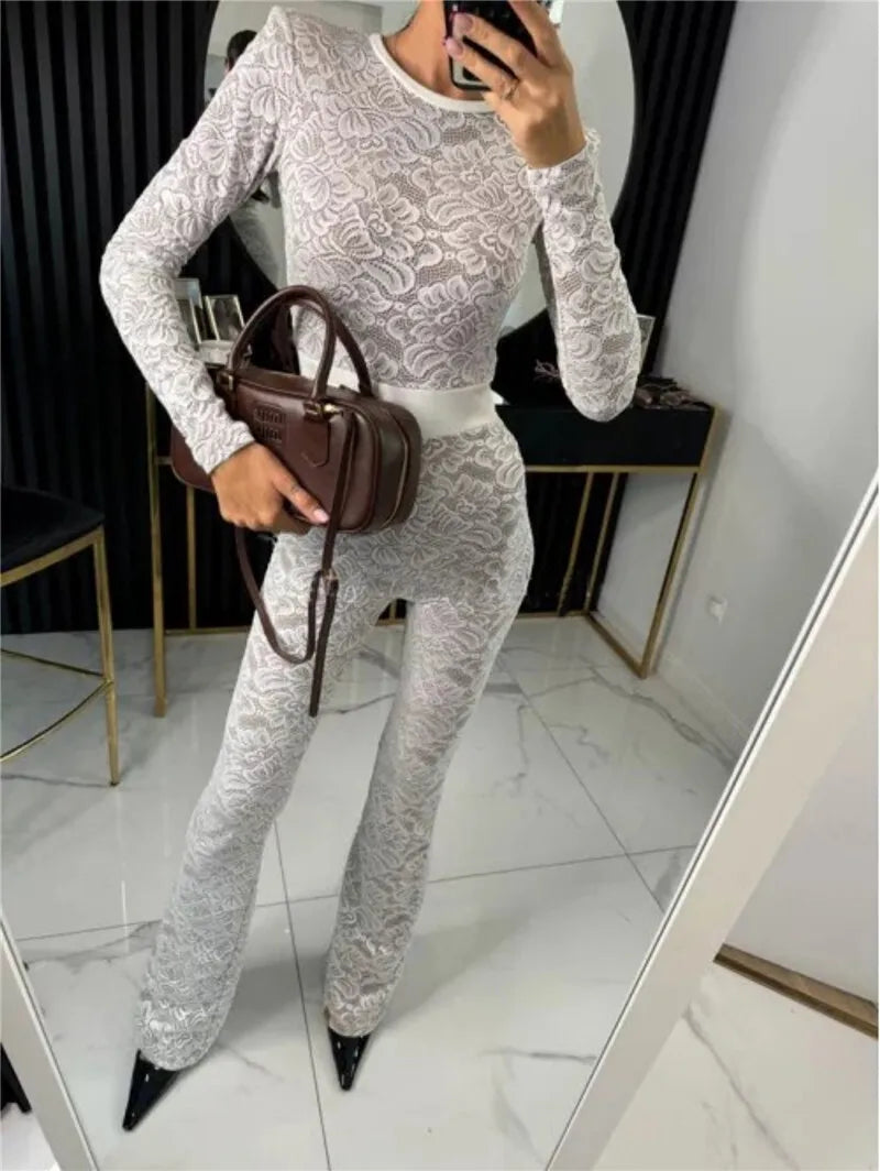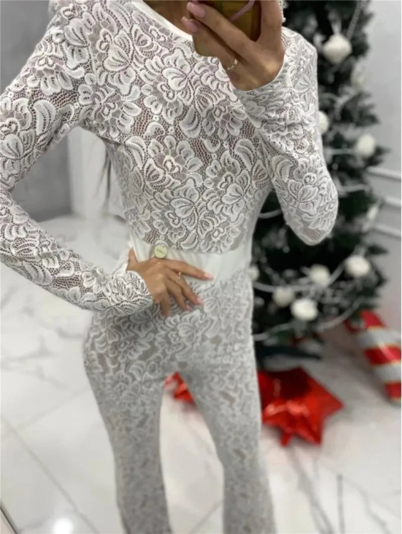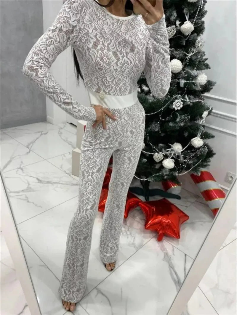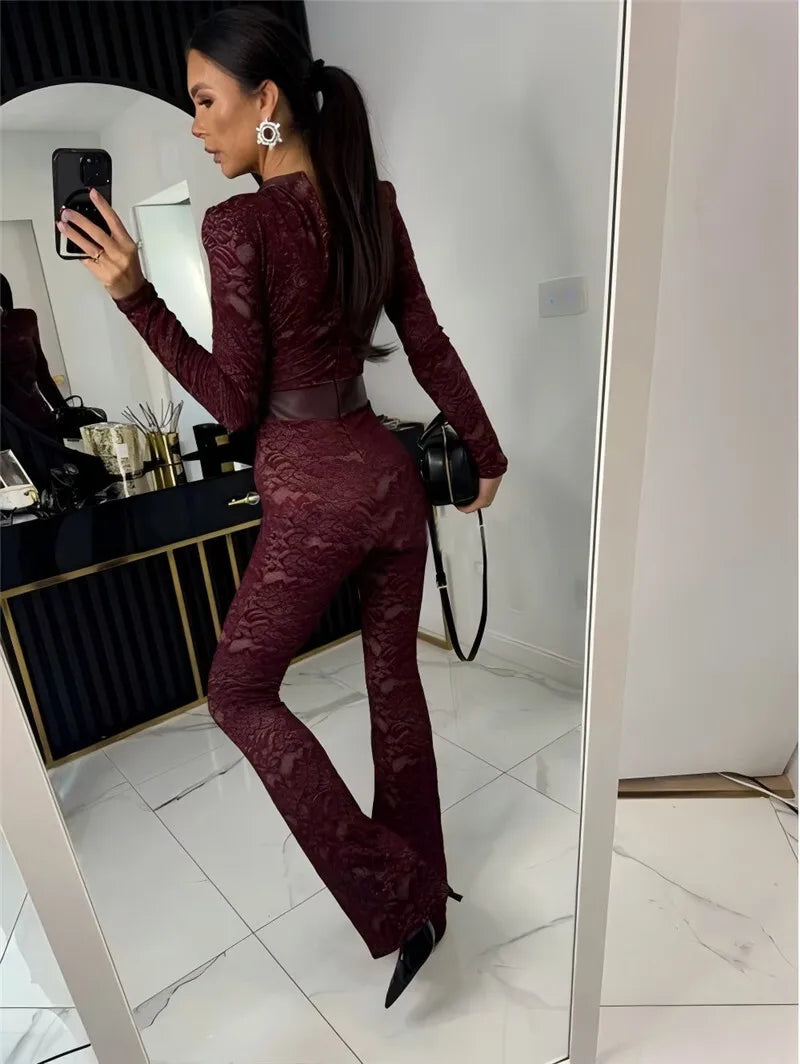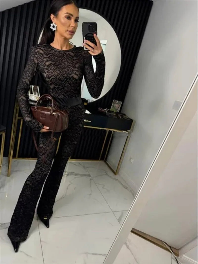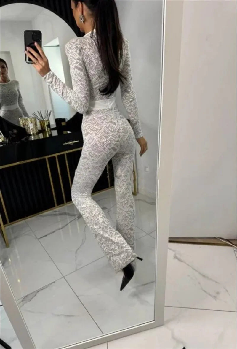 Lace Print Long Sleeve Two Layer Jumpsuits