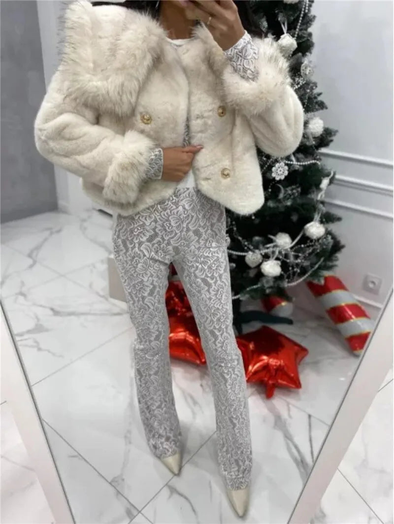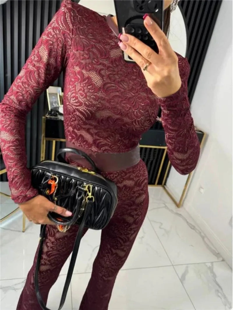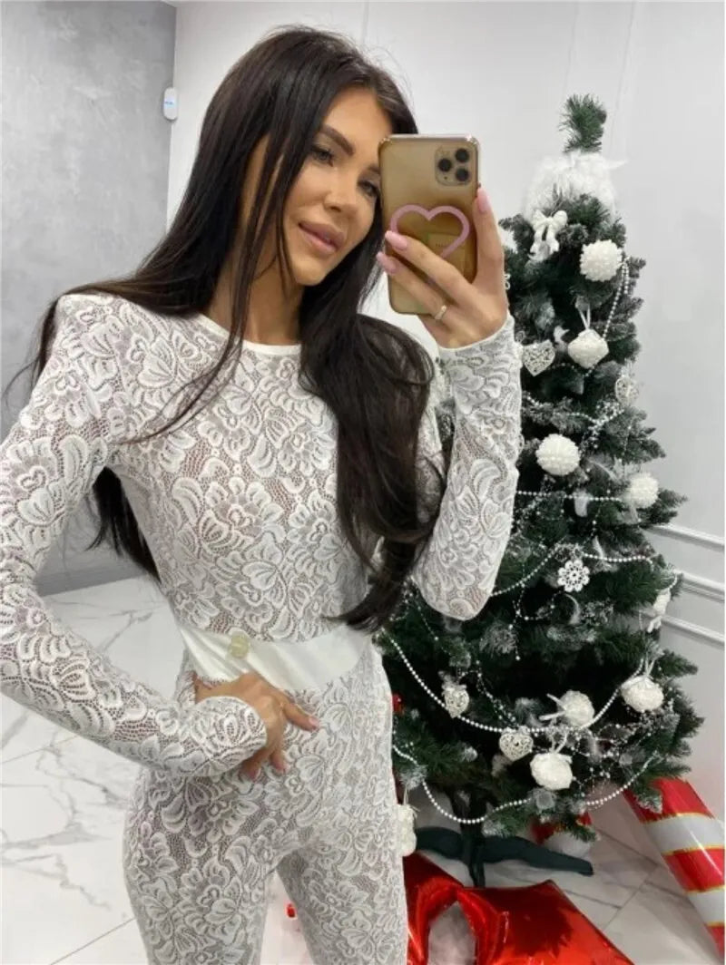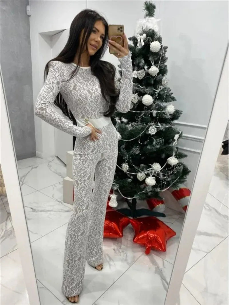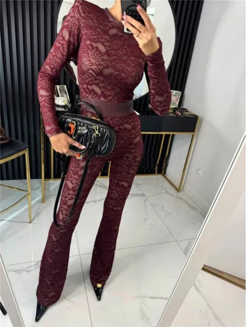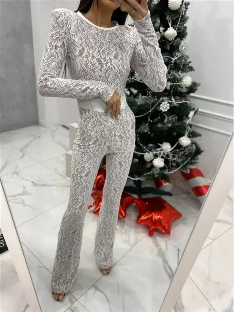 Lace Print Long Sleeve Two Layer Jumpsuits