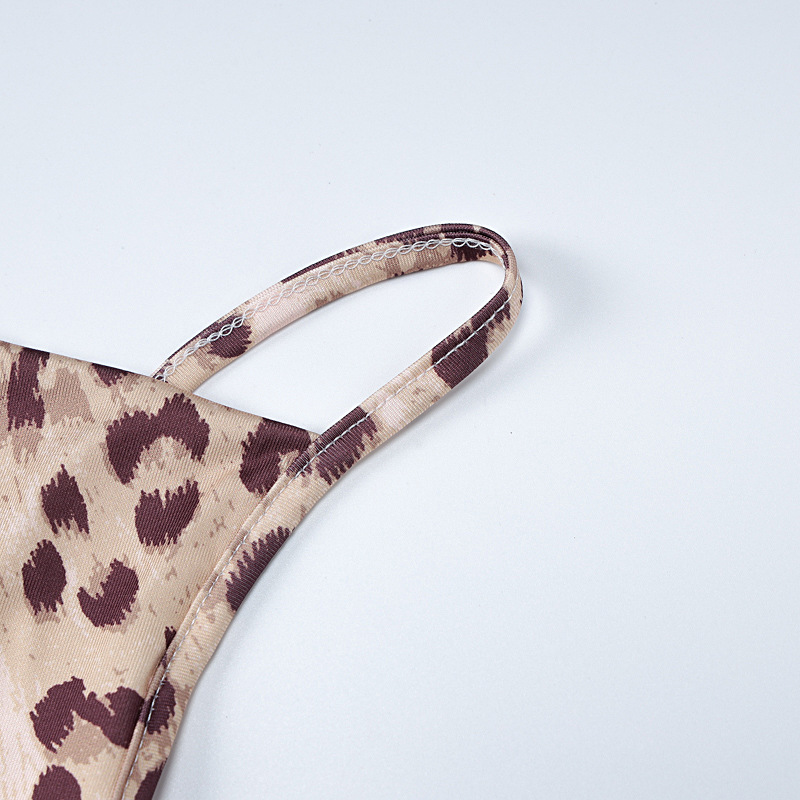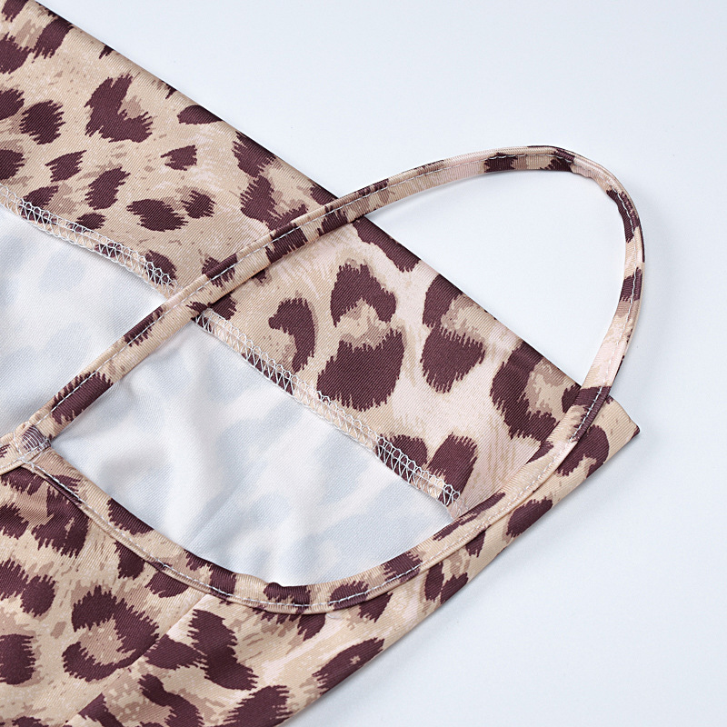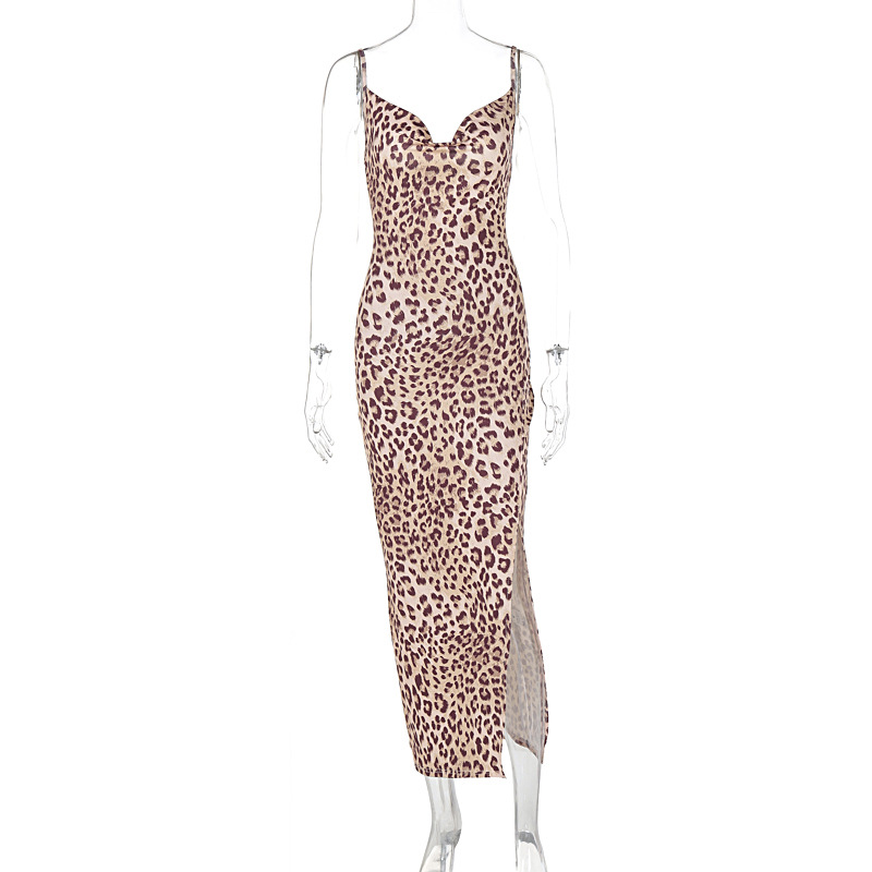 Leopard Print Sling Slim Fit Backless Split Dress