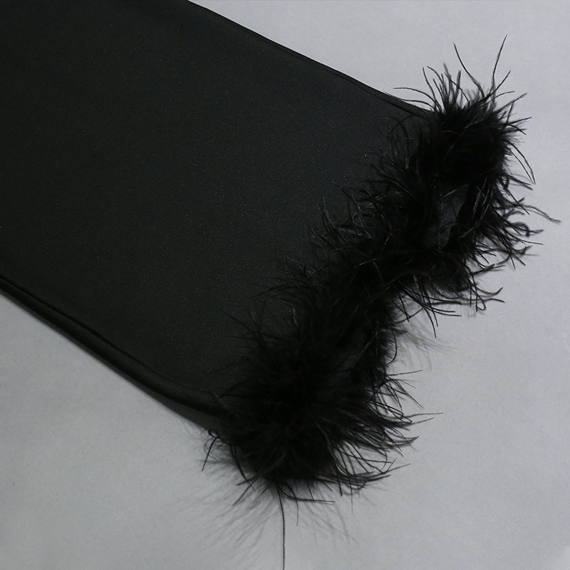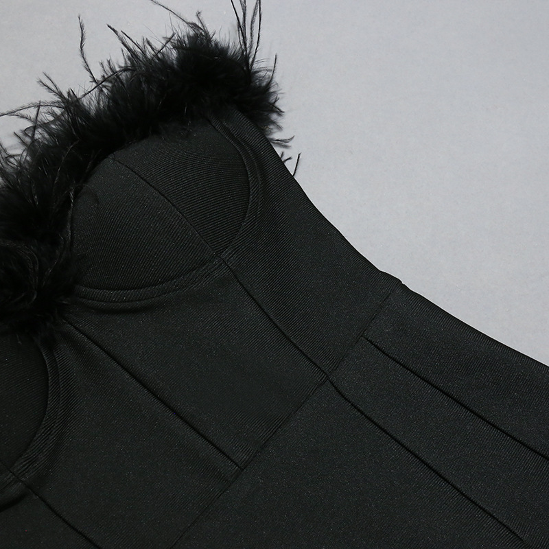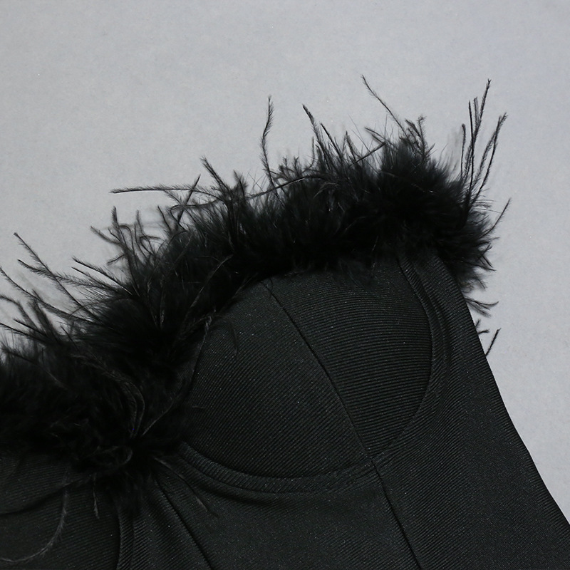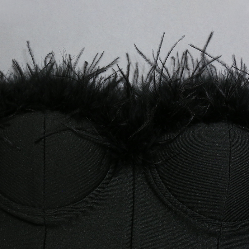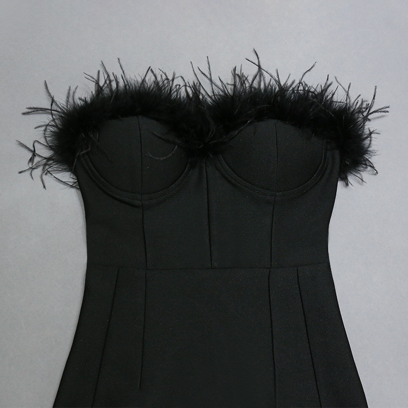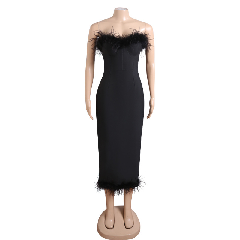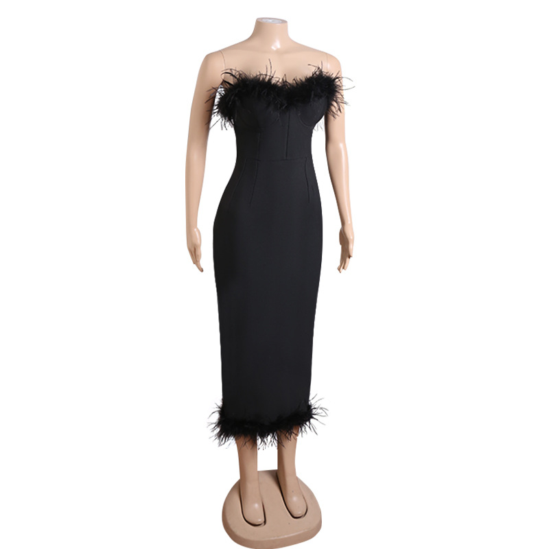 Light Luxury High End Elegant Tube Top Feather Dress Long Bandage One Piece