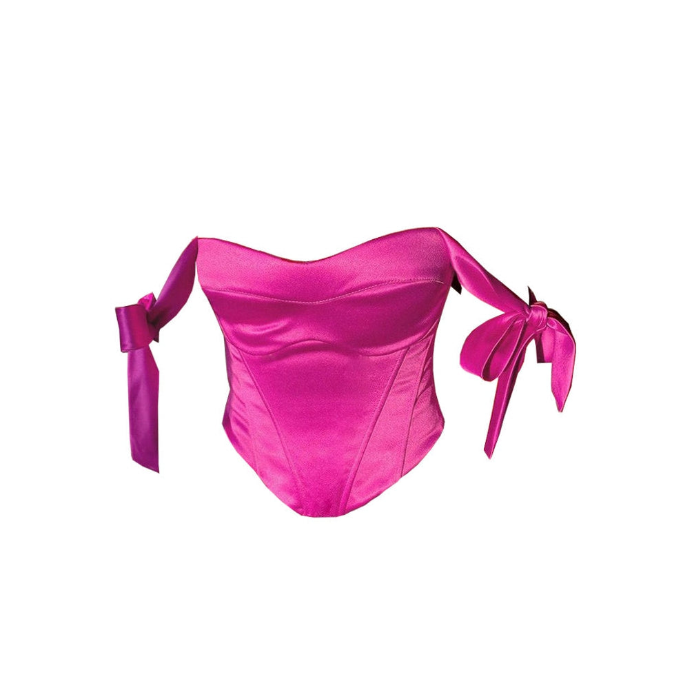 Dieses Korsett-Crop-Top im Fairycore-Stil hat einen quadratischen Ausschnitt und große Schleifendetails mit verstellbaren Bindebändern ��ï¿?/span>