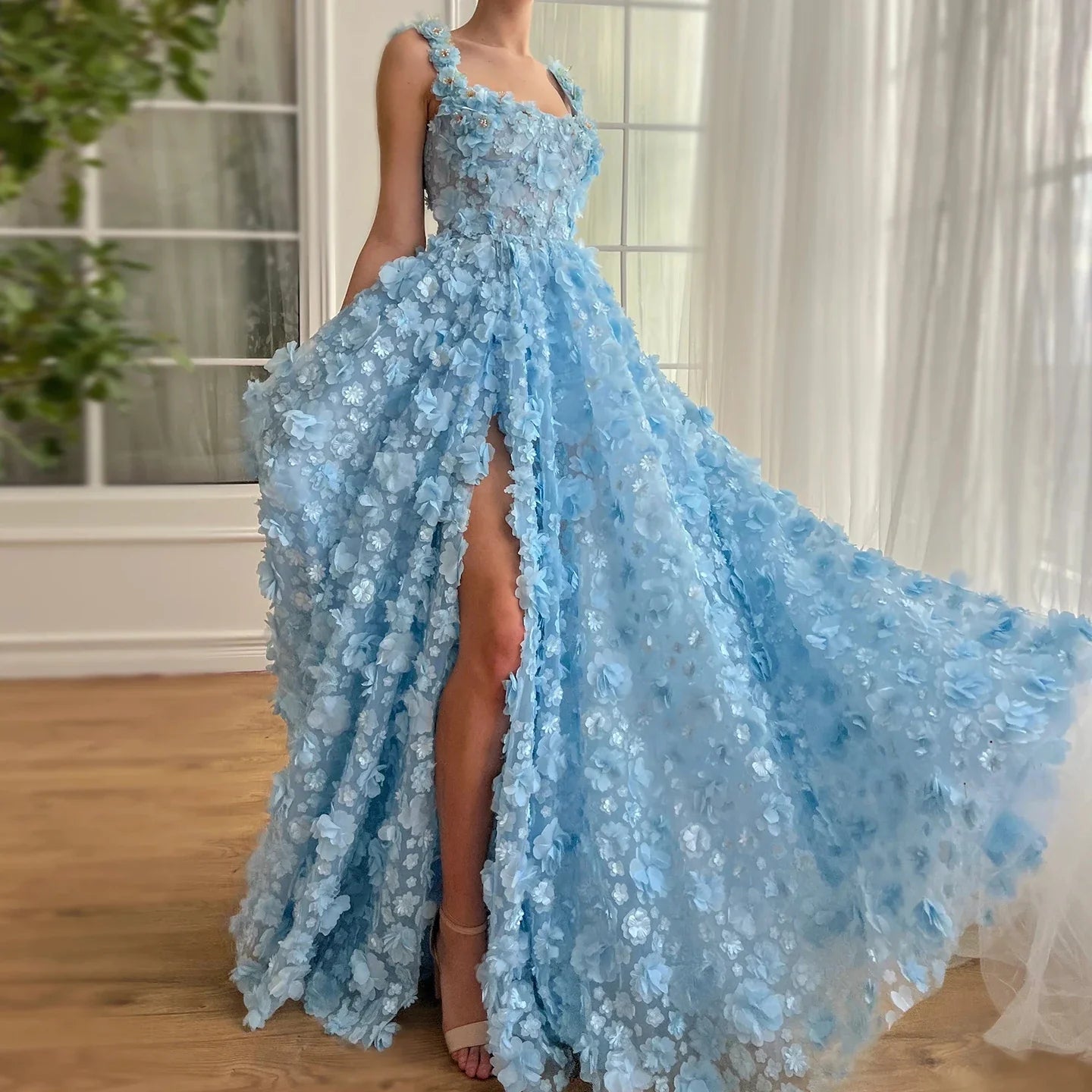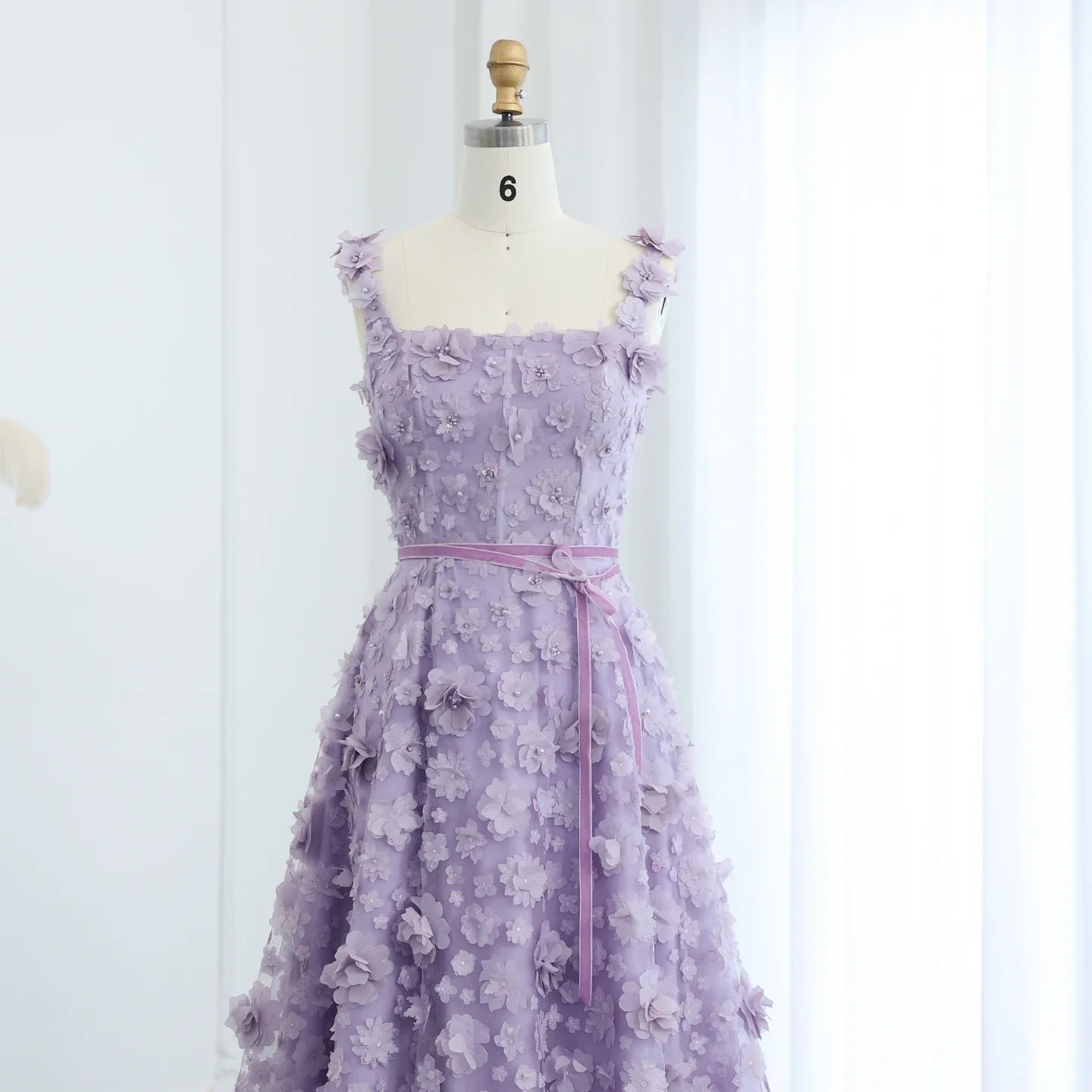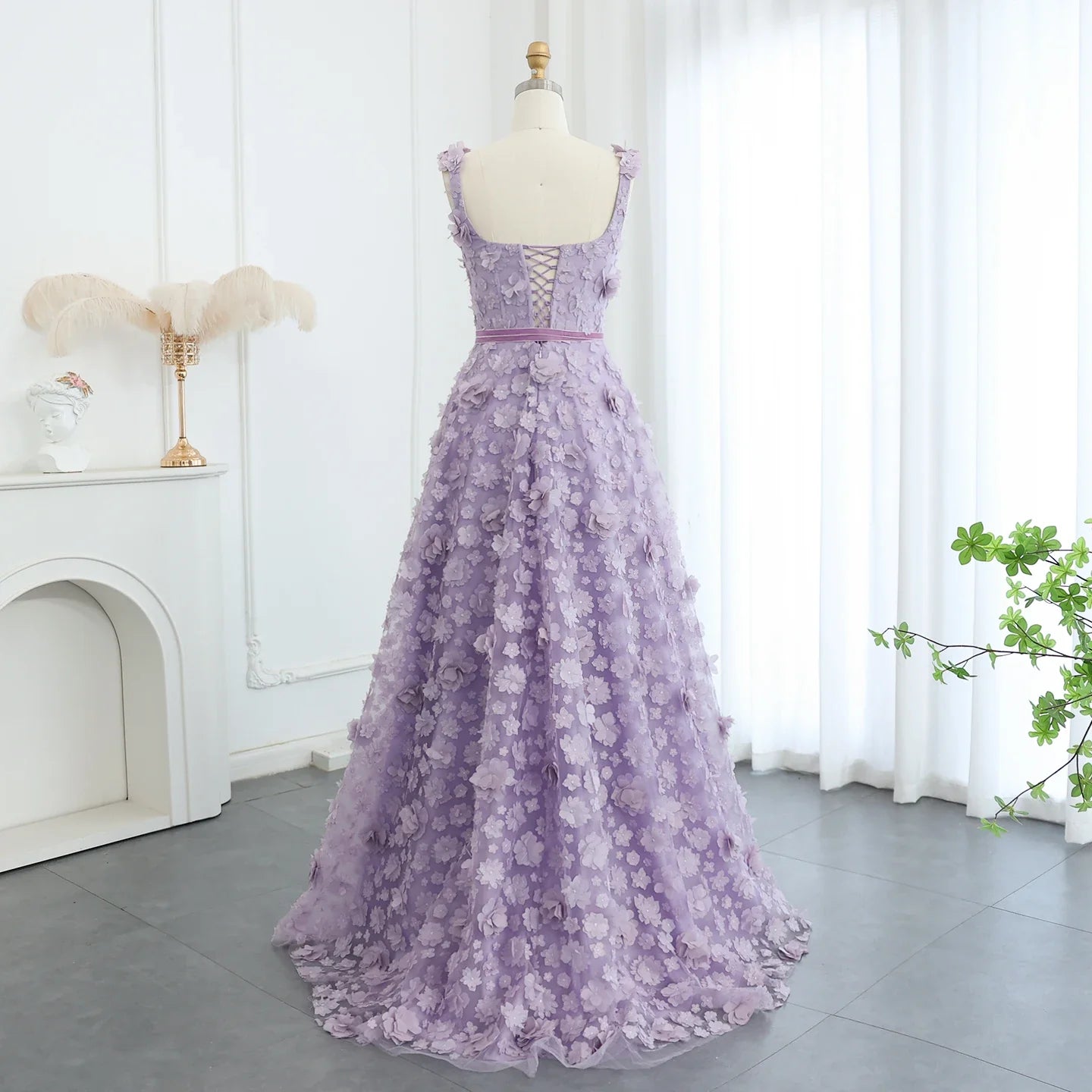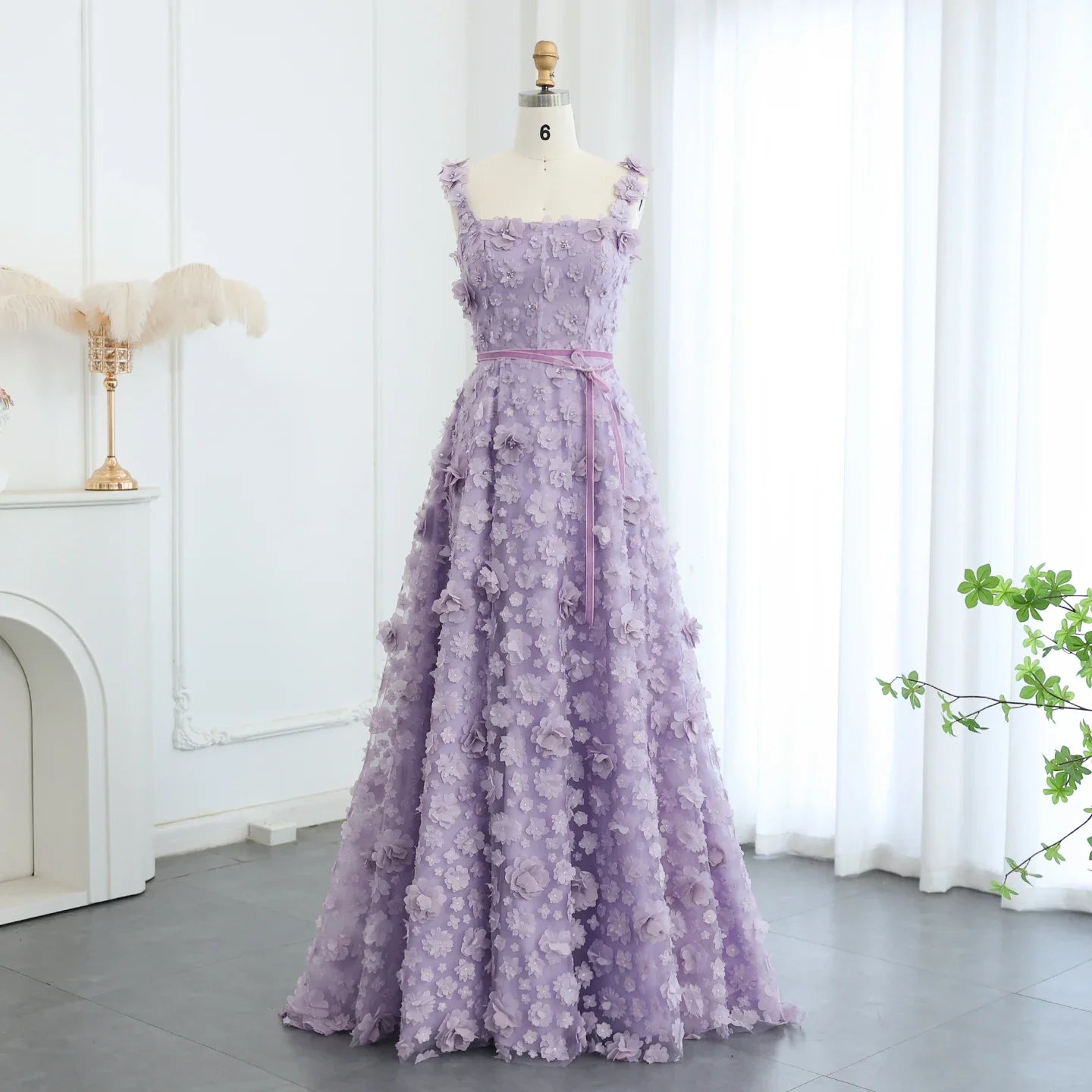 Lilac 3D Floral Evening Gown with High Slit