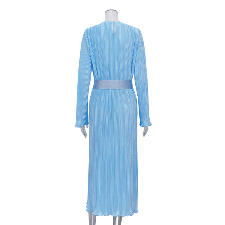 Long Sleeved Belt Pleated Dress Office High Sense Loose Maxi Dress