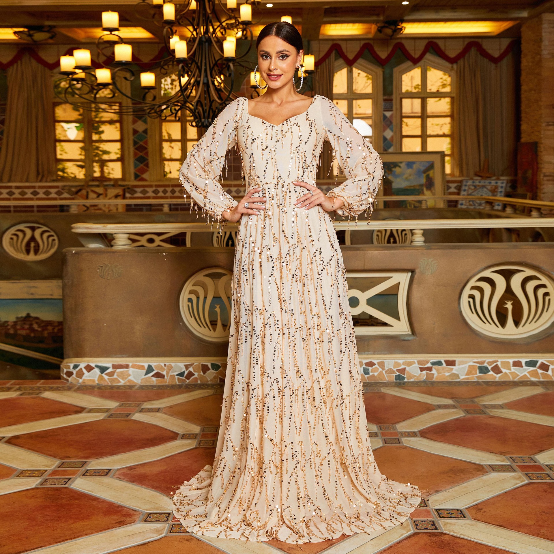 Long Sleeved Elegant V neck Long Sequined Cocktail Evening Dress Bridesmaid Dress Large Swing Dress for