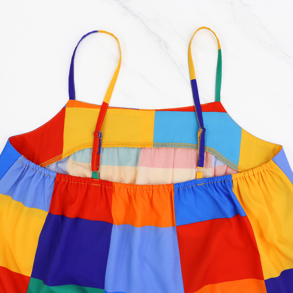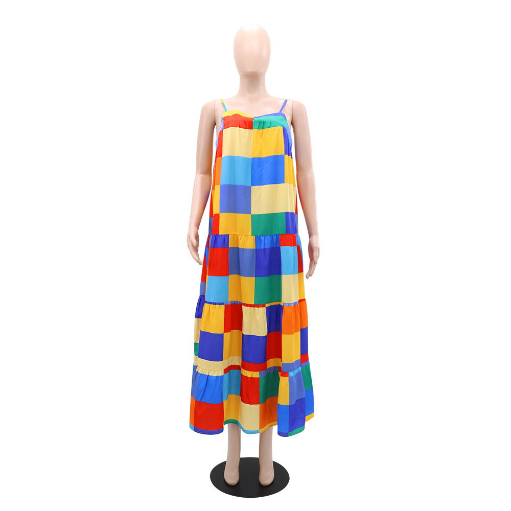 Maxi Dress Suspender Plaid Colored Mosaic Straight Dress