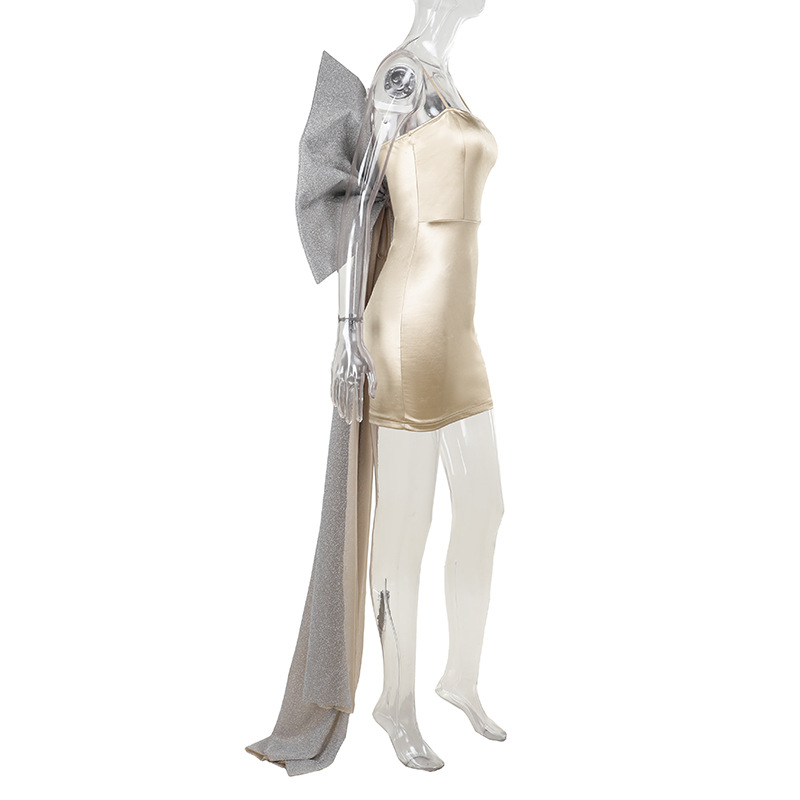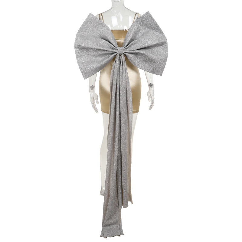 Mercerized Tube Top Bow Socialite Slim Fit Hip Wrapped Short Dress
