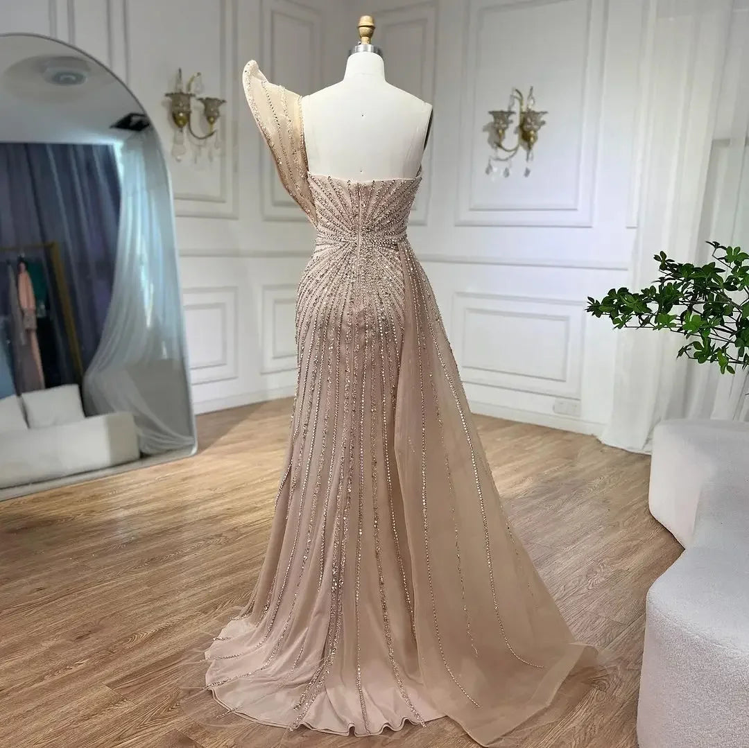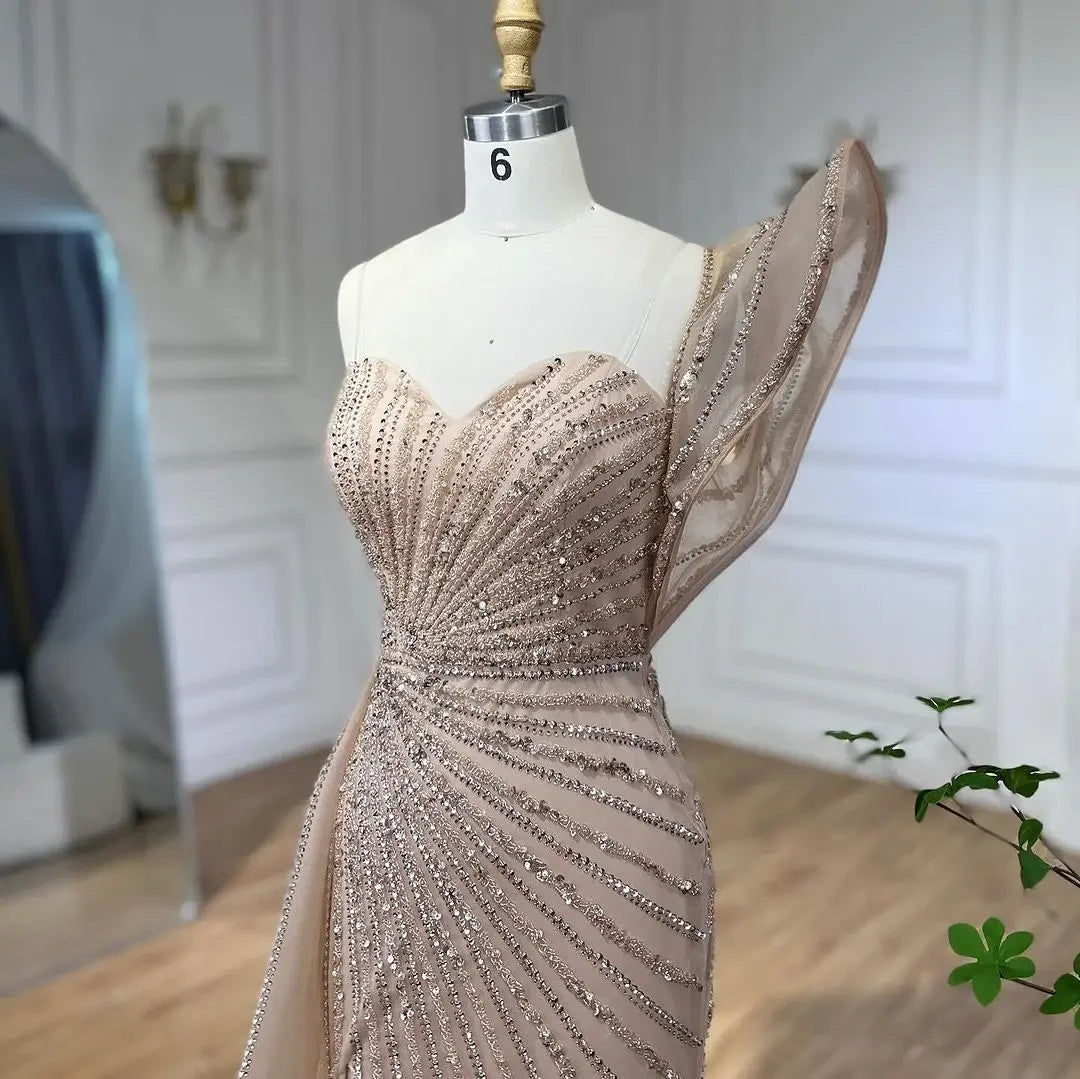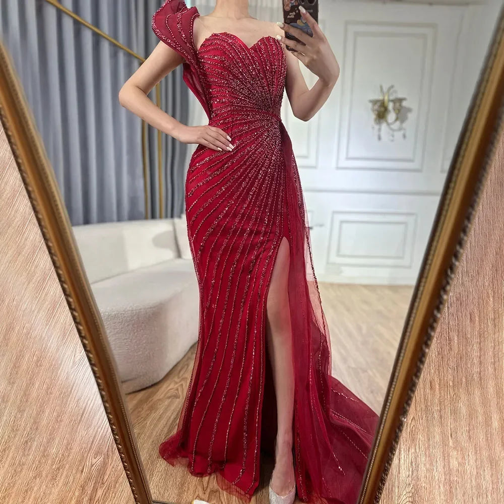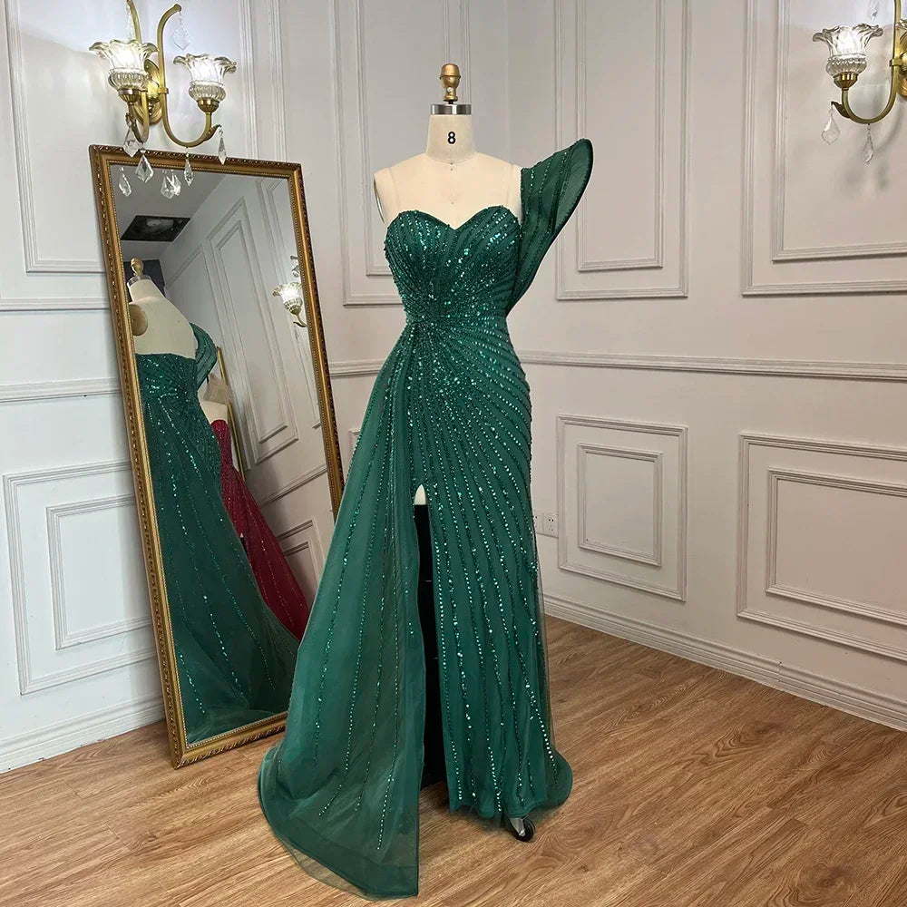 Mermaid Beaded High Slit Elegant One Shoulder Gowns