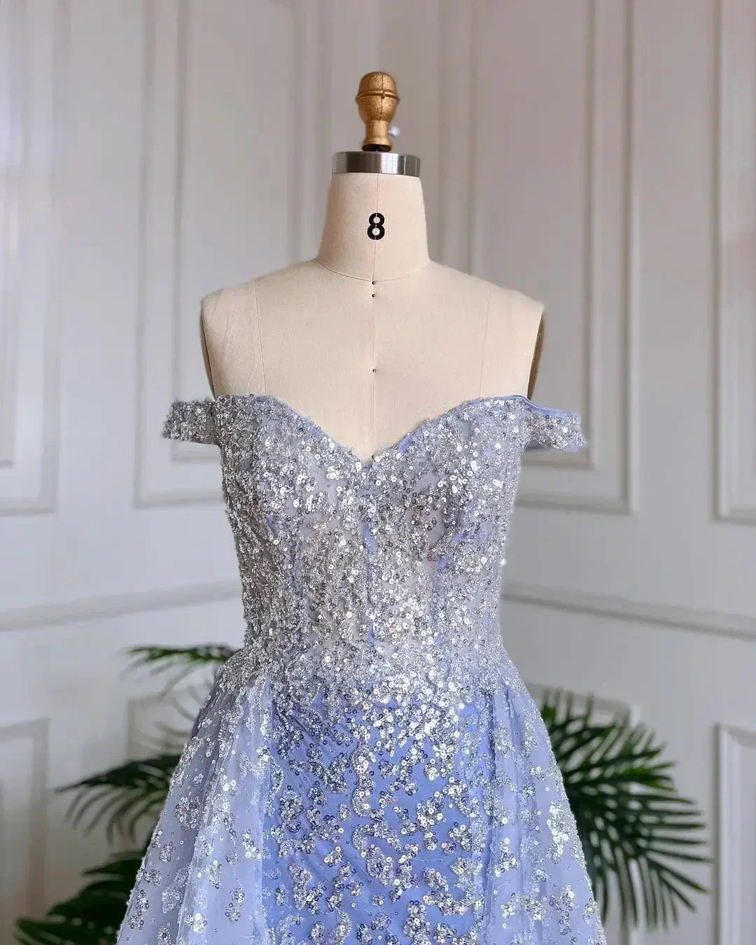 Mermaid Boat Neck Beaded Off Shoulder Gowns