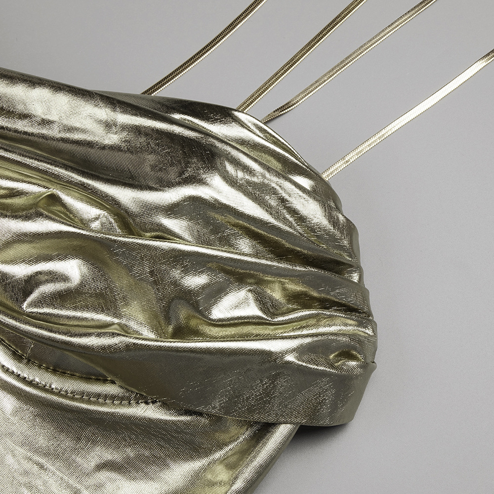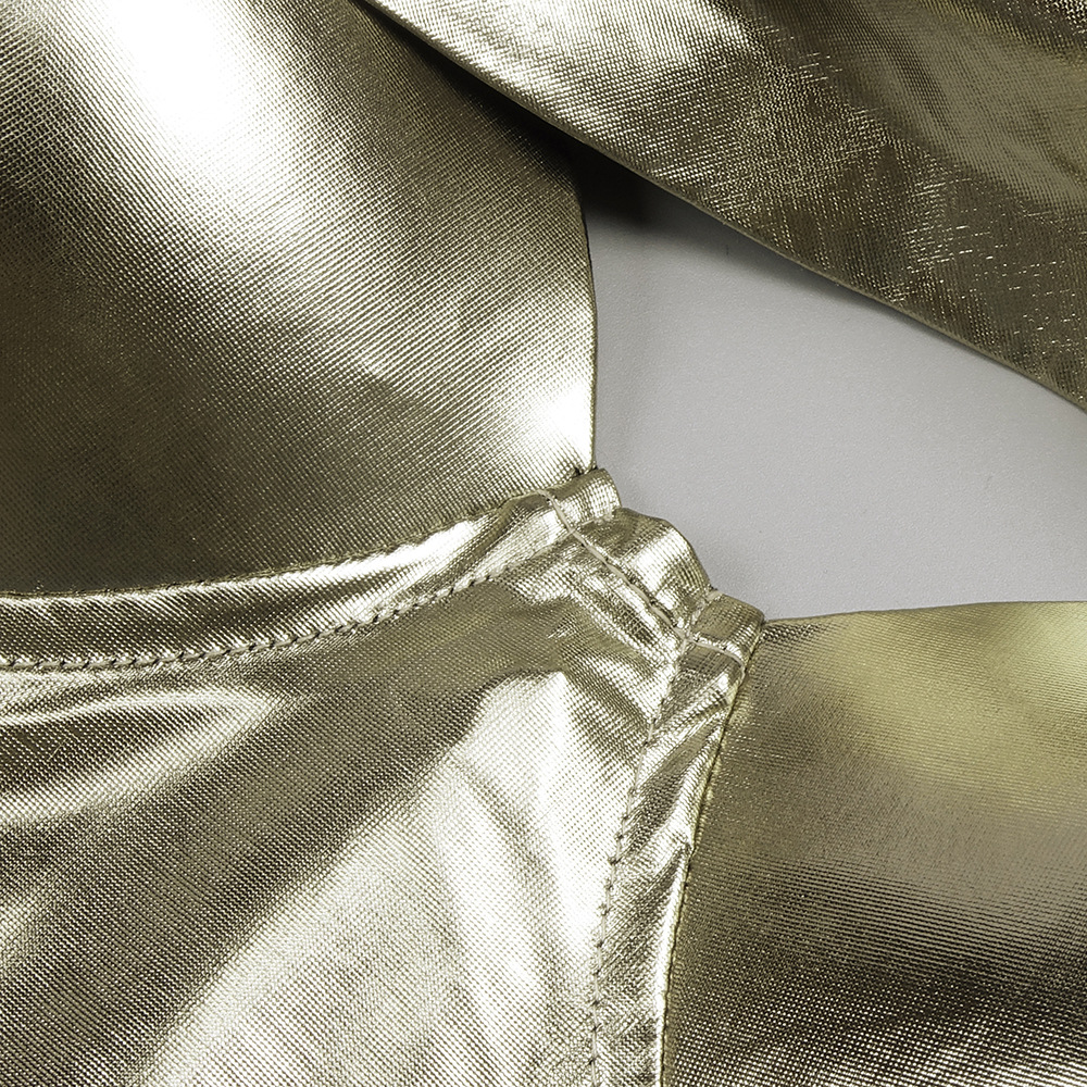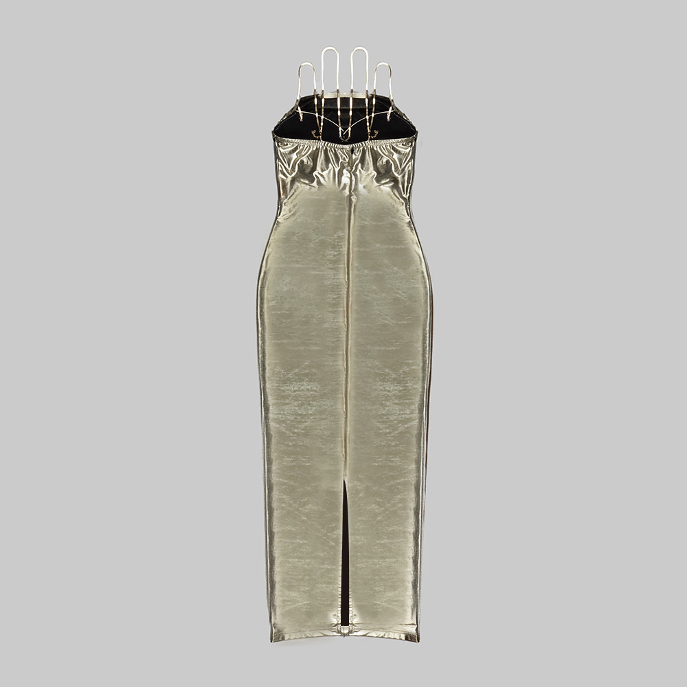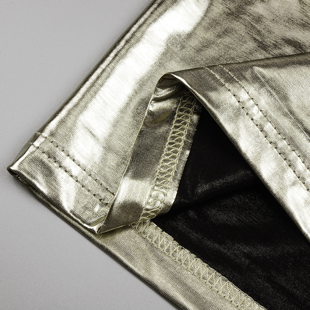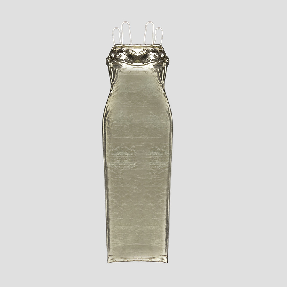 Metallic Coated Fabric Bronzing Color Sling Backless Dress Texture Pile Collar Strapless Dress Backless Nightclub