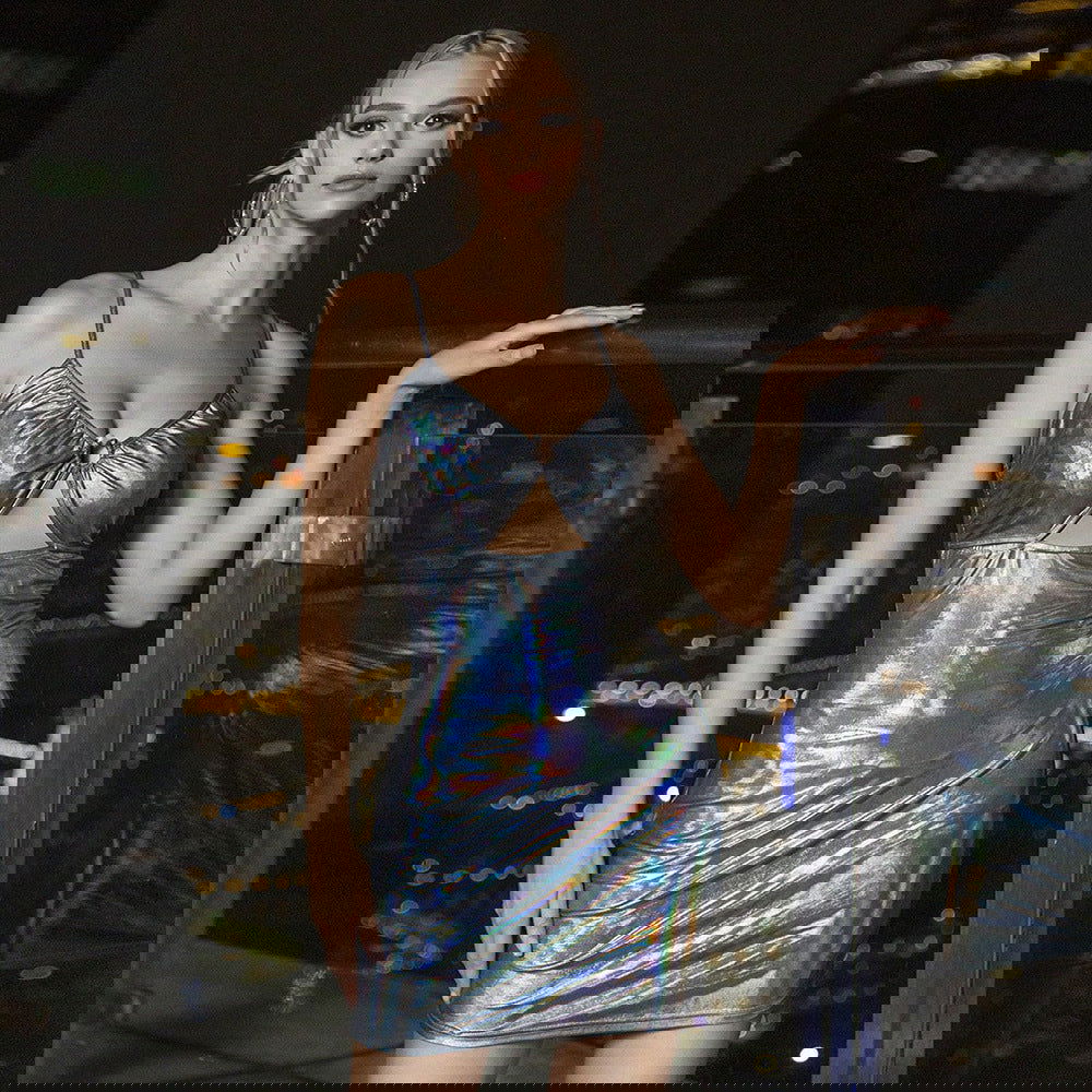 Metallic Coated Fabric Shiny Night Club Slip Hip Dress