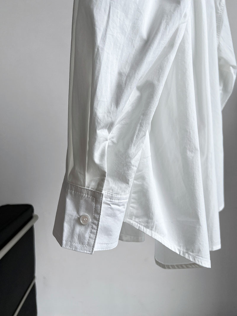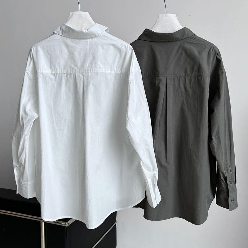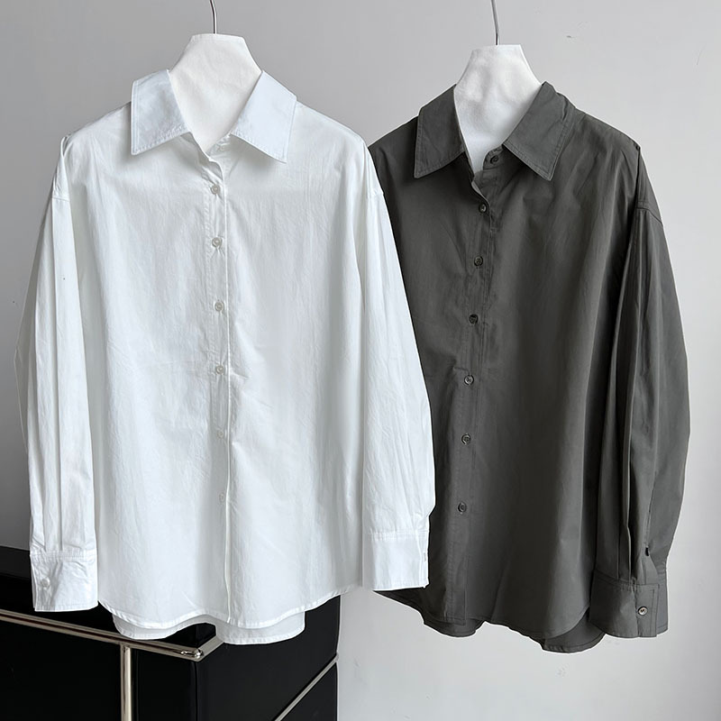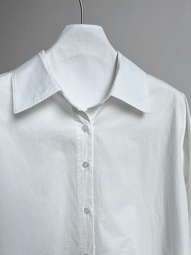 Minimalist All Match Cotton Long-Sleeved Shirt Bandage Dress Polo Collar Top Coat