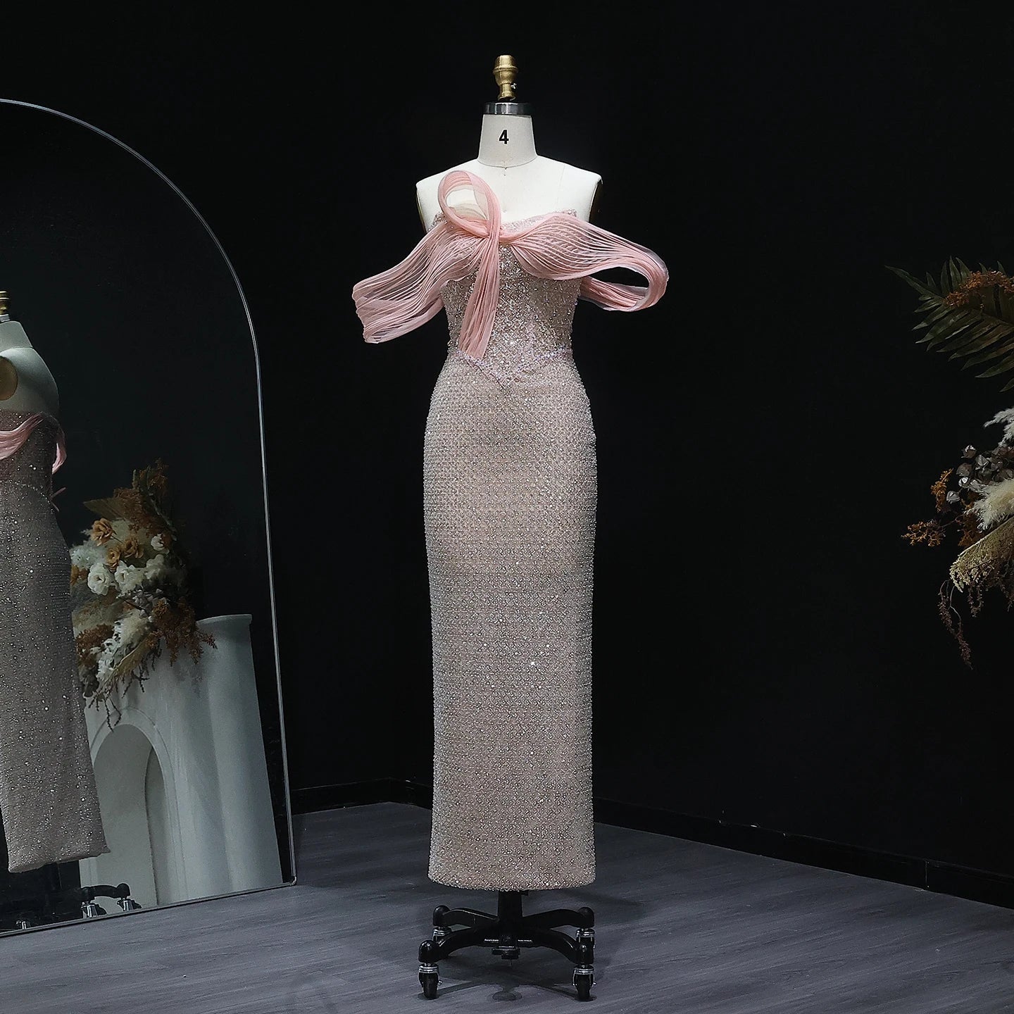 Off-Shoulder Blush Pink Embroidery Dress Details: